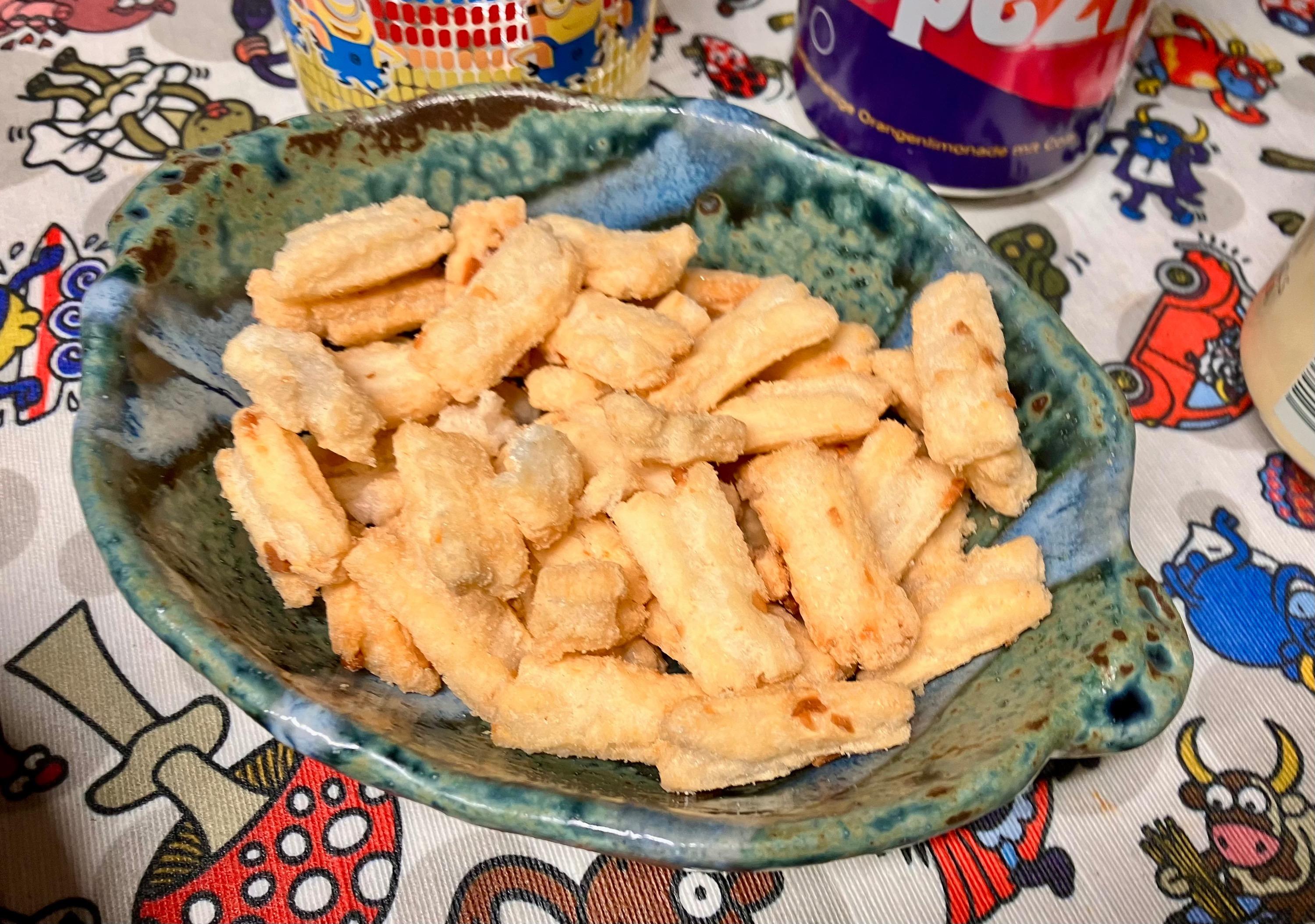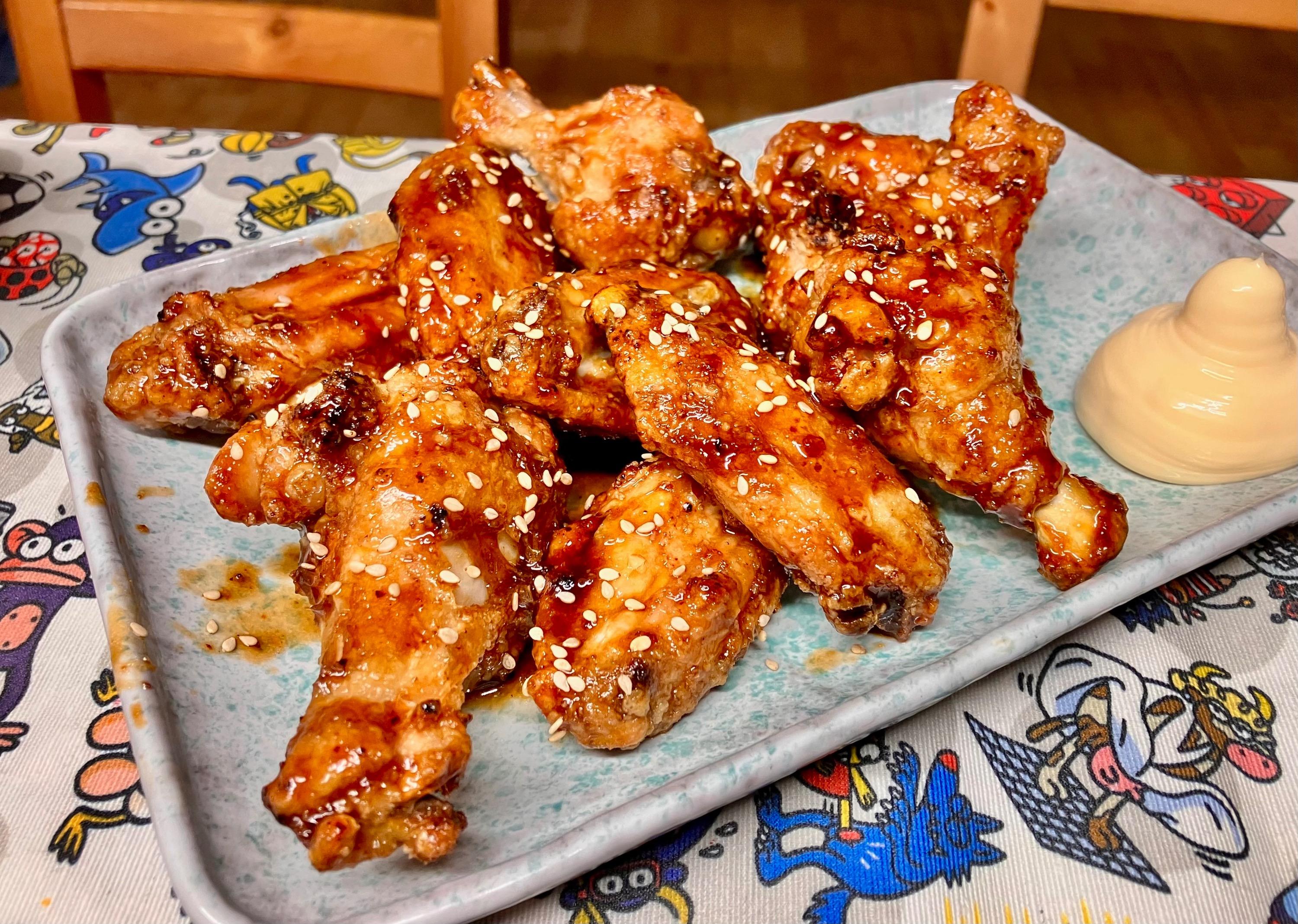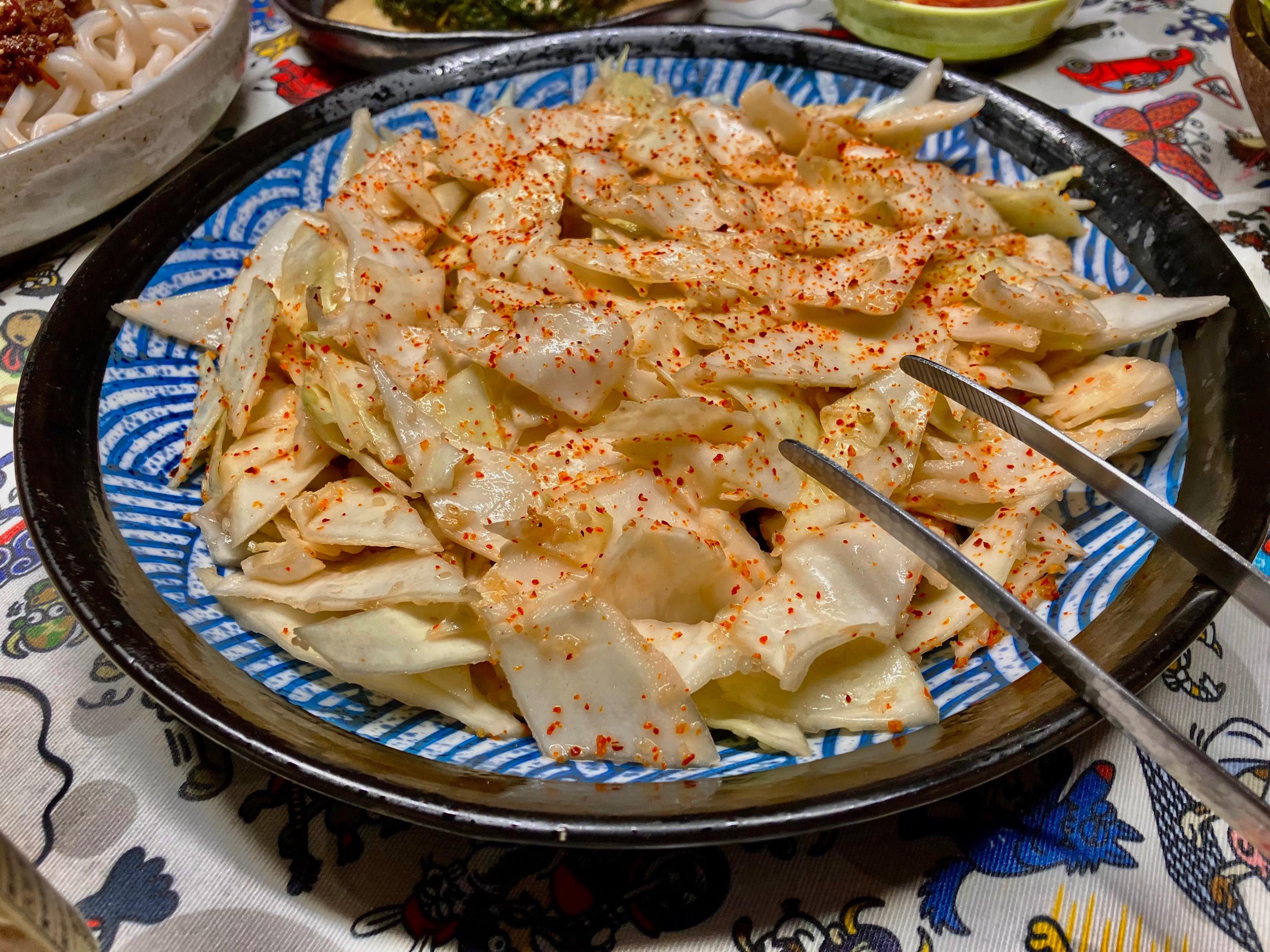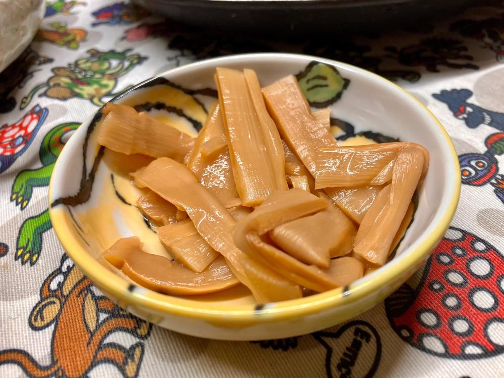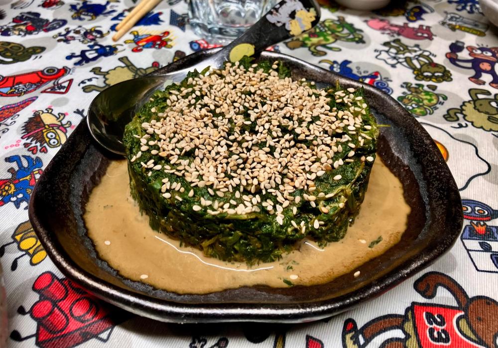 Little one had a friend over, who stayed for dinner. I offered hot docs; little one requested gyoza. Soooo … Japanese diinner: I picked some dried hoya (sea pineapple) a snack. The perfect accompaniment to sake .. I am not sure if I ever mentioned tgat beside housing my whiskey collection and my cookbooks, the mancave is also home to a rather extensive collection of one cup sakes ? Tonights treat … And foodwise … rice crackers: Excellent menma … Gyoza: Ajinomotos pork one. Simply no comparison 🙏 Tuna tataki & salmon sashimi ..: Chicken tebasaki … Yamitsuki cabbage … Soinach with black miso-sesame dressing … And Dan Dan Udon … And for dessert: Melty kiss … very melty, very good ! No complaints 🤗