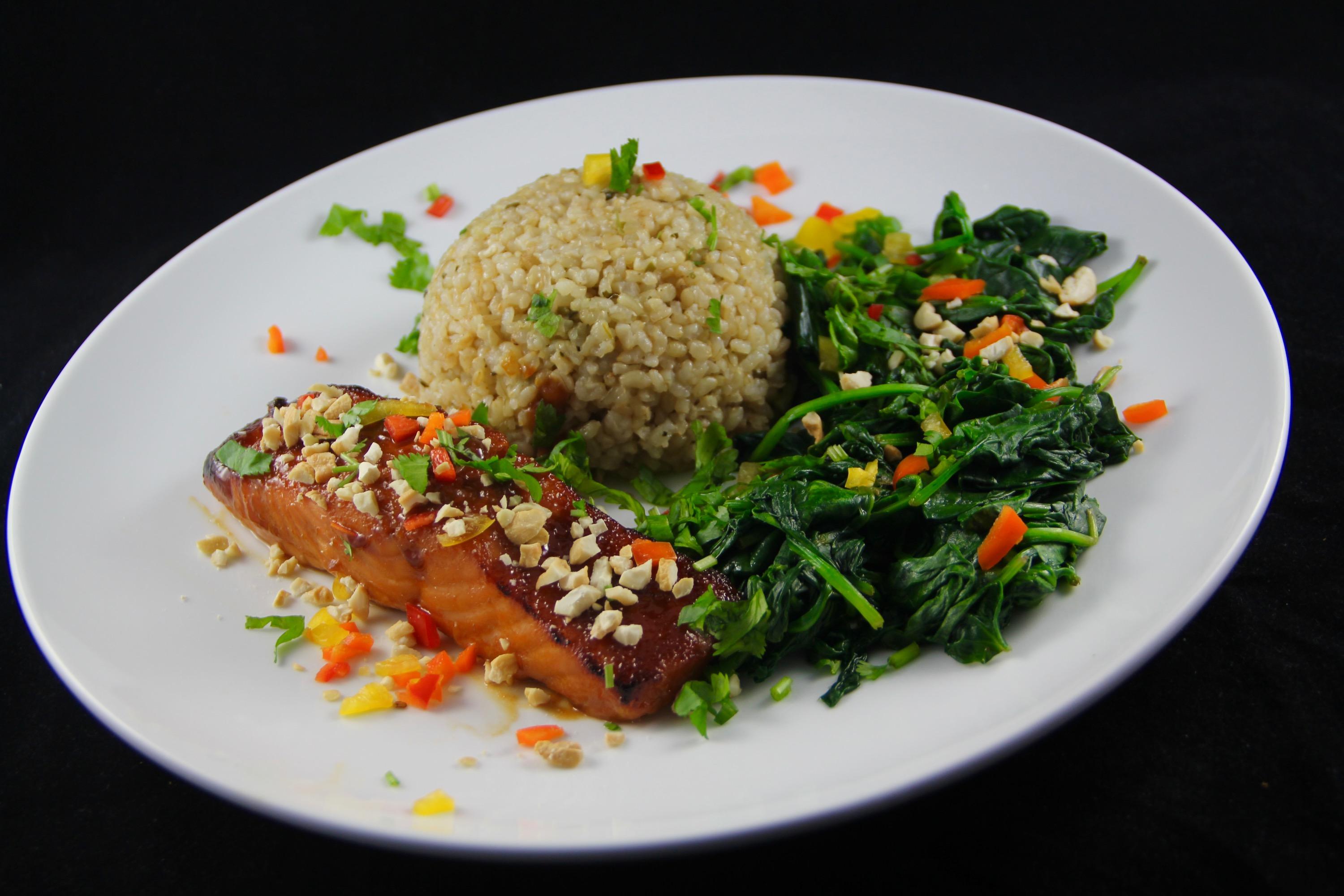 Miso salmon, coconut brown rice with ginger, and spinach. My sister was chopping garnishes while I was cooking dinner, and we ended up with way too many (cashews, cilantro, peppers) so we ended up just strewing it all over our plates and calling this our “Love, Actually” decorated dinner, inspired by the scene where Rowan Atkinson’s shop clerk keeps adding more and more decorations to a gift wrapped piece of jewelry.