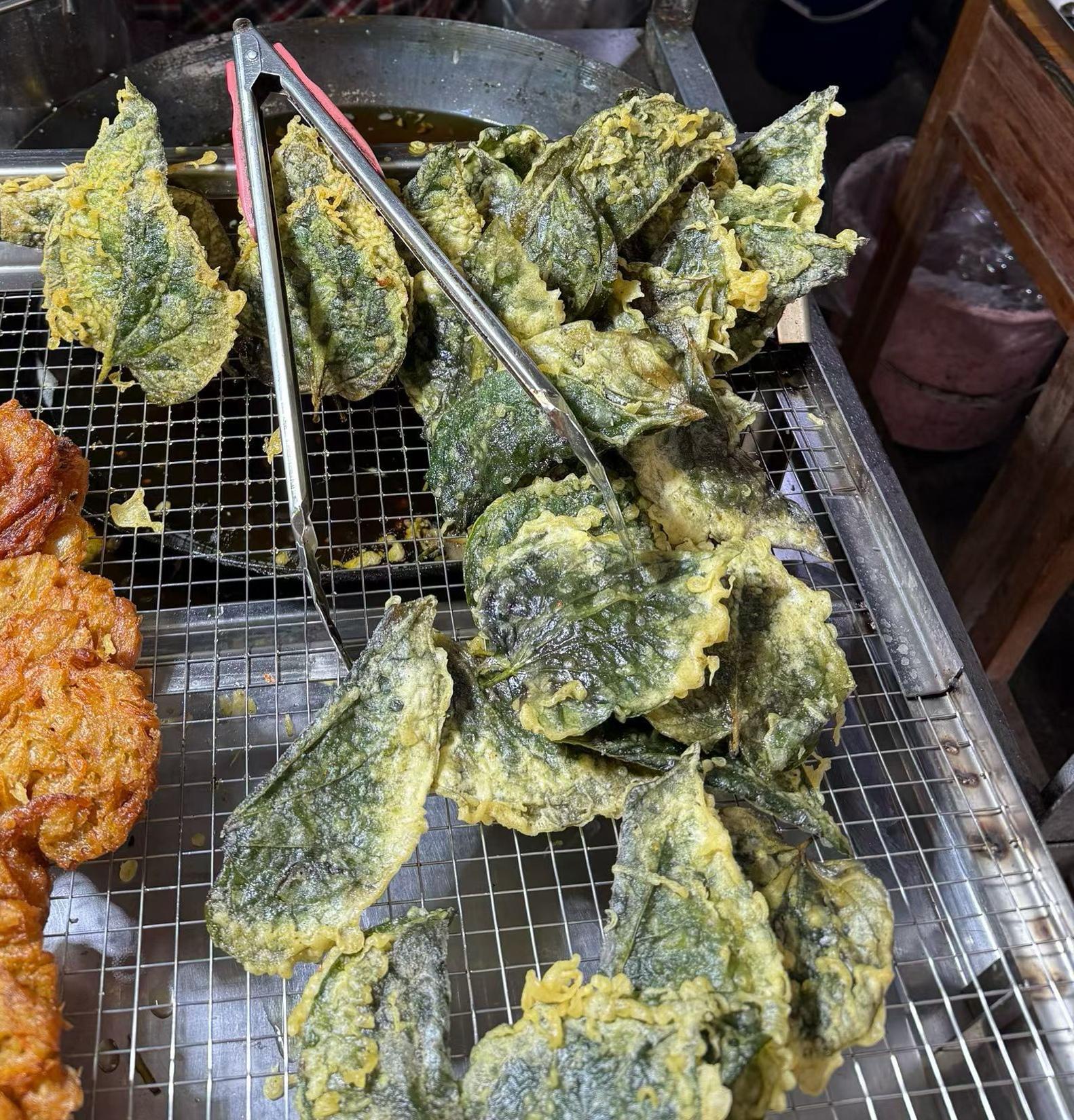 Too far back to edit, but sometime ago I mentioned young lotus leaves being edible. Here is an example from a Maoan ethnic minority village in northern Guangxi. Lightly "breadened" and fried in the night market.