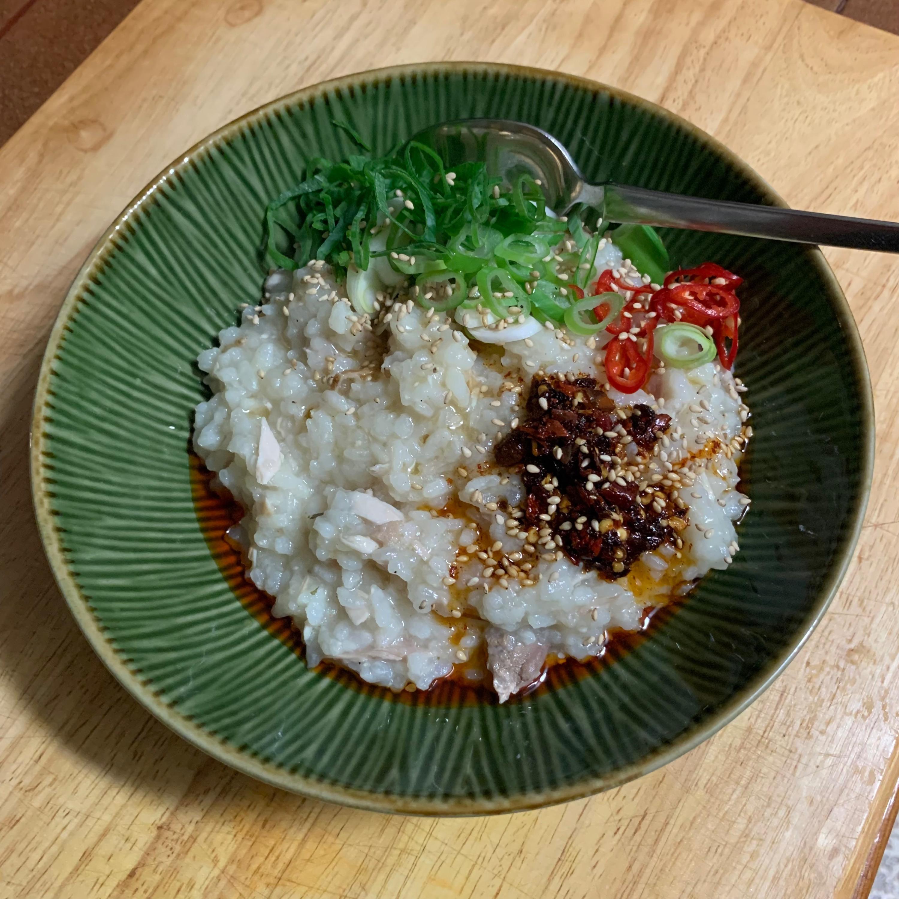 The turkey that keeps on giving, and yet another episode of “things in bowls”. I’m calling this poultry rice porridge.