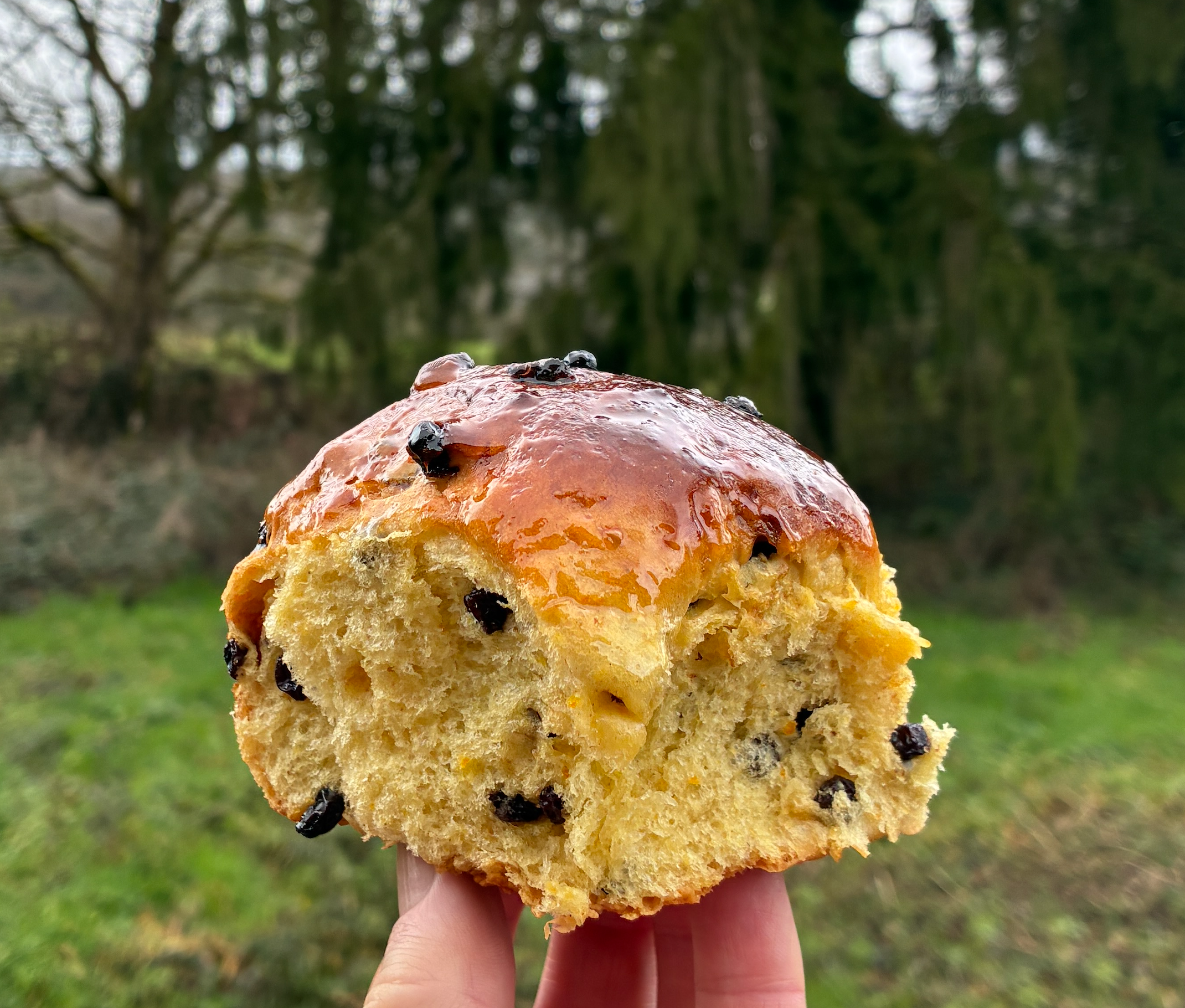@AAQuesada @Tropicalsenior I'll pick up some dates at some point and take a stab at it. Thanks. Today's lunch was a Shoo Fly Bun (or three) by Helen Goh... Apparently these were popular at a Melbourne bakery called Babka back in the day. A whole orange is puréed into the enriched dough, with milk powder and a tangzhong keeping things extra soft. They didn't taste as orangey as I imagined they would - more of a gentle caress than a slap in the face - but were successful, nevertheless. She recommends eating them slathered with salted butter, which was more than enough encouragement for me... -
