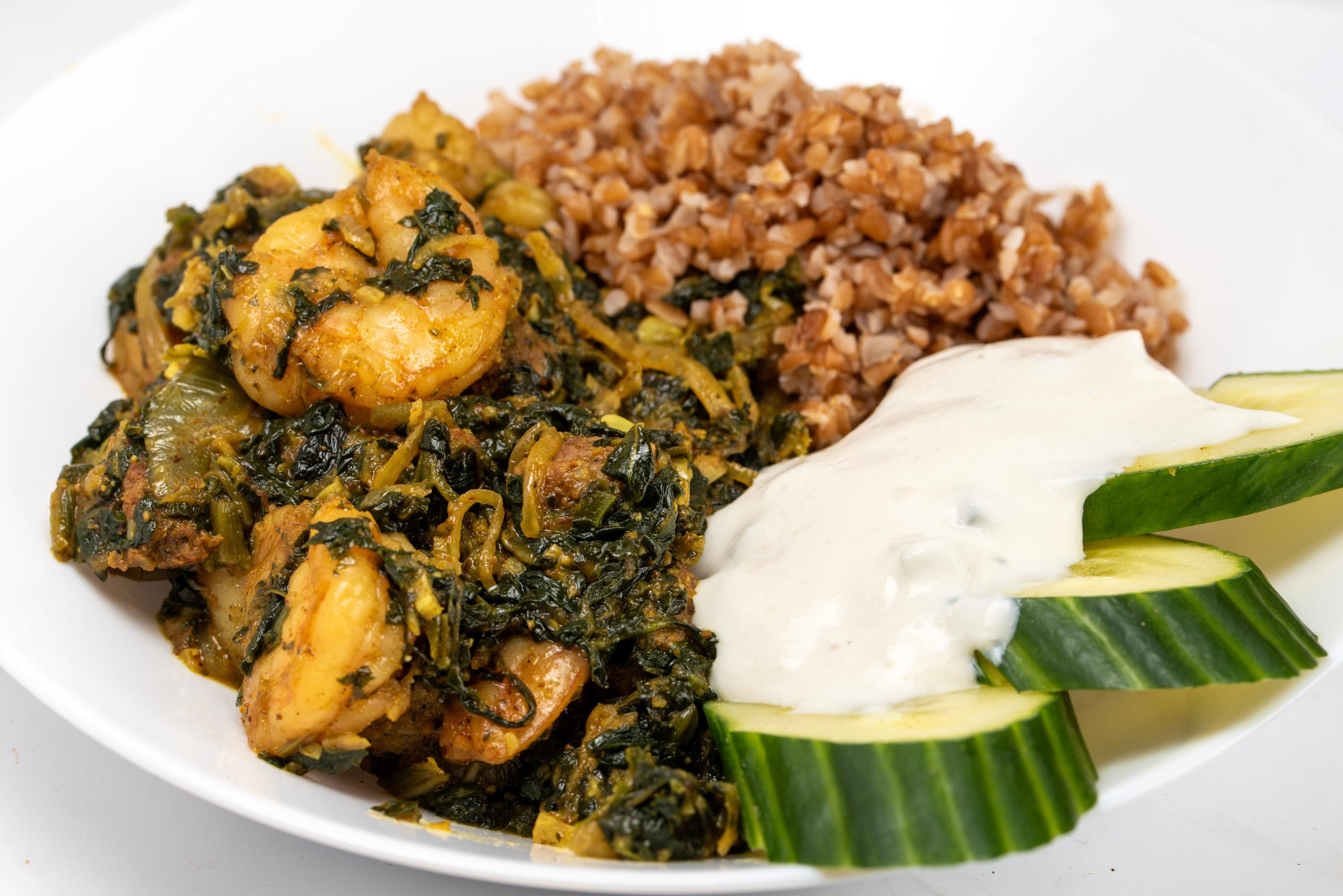 I'm always happy with Thai curry. Green, red, panang, jungle, yes please! Improvised dinner tonight. We had Mexican chorizo, yogurt, and chiles in the fridge, and shrimp and spinach in the freezer. Sauteed cubed chorizo and removed. Seared shrimp in the rendered fat and removed. Browned sliced onion, added minced garlic and chile serrano, and then mixed in the dry spices (ground coriander seed, cumin seed, cardamom seed, black pepper, turmeric, cloves, and canela). Deglazed with chicken stock, added spinach, roasted/diced chile Poblano, and yogurt, then simmered for a bit. Mixed in the shrimp and chorizo and finished with fish sauce and garam masala. House guest made bulghur, and we had tatziki from Mrs. C's trip to the Syrian market. Sliced up some cukes and called it a meal.
