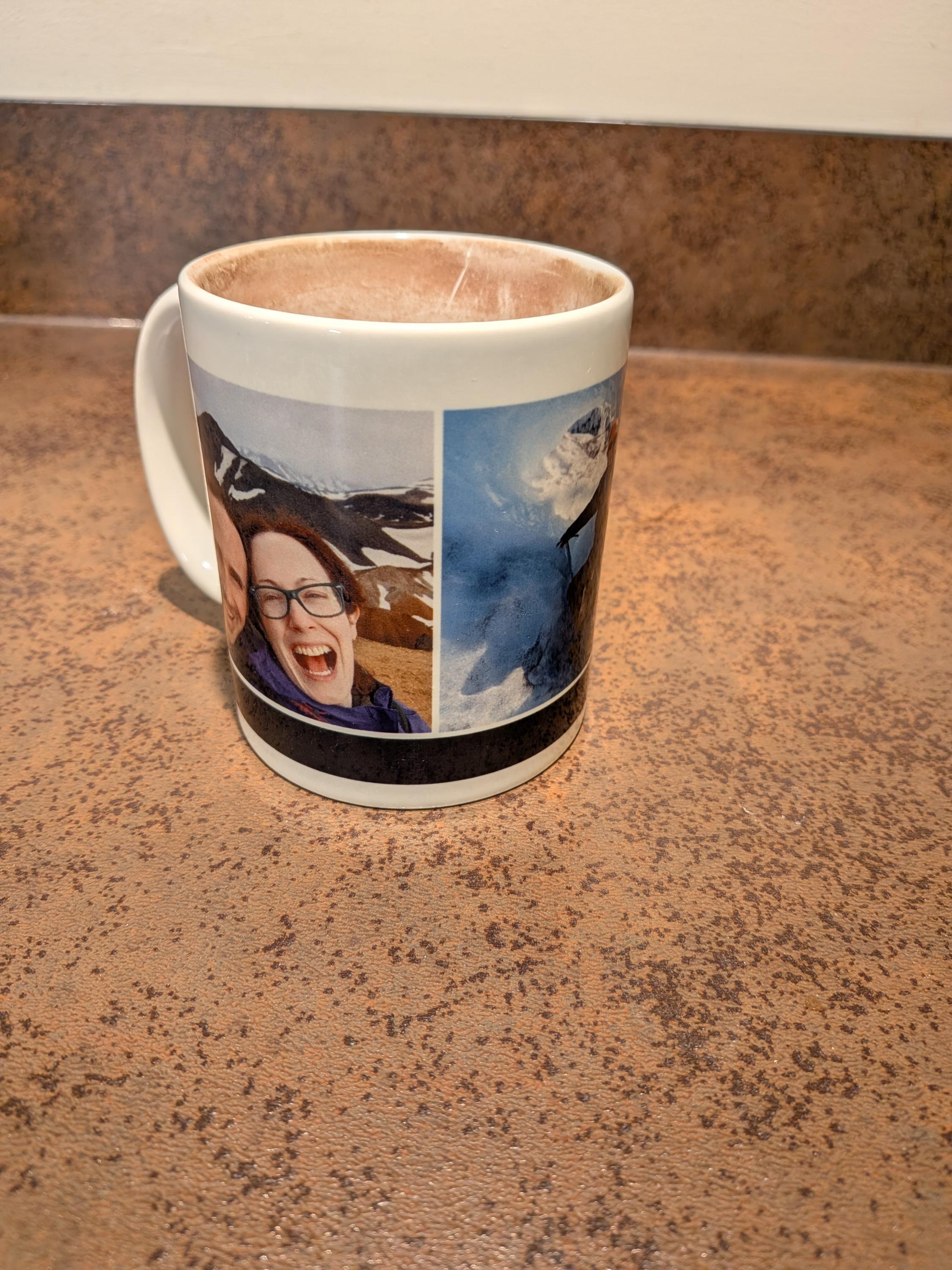 I use this one all the time, only for tea. It's a bit stained.... It matches my wife's mouse pad....
