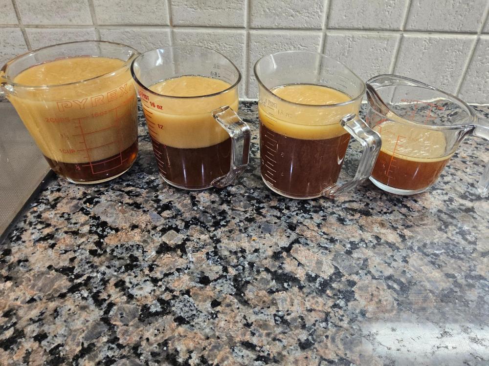 @rotuts This is my yield. the first cup has a lot of fat, once the fat has solidified I'll remove it and test the end product. I'm hoping for good things.