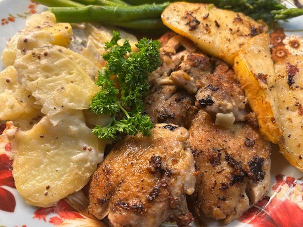 Weight Watchers Air Fryer Crispy Chicken, Cavendish Flavour Crisp Fries (So handy!) Shrimp & Mixed Veg" Quick meal! Eating from the freezer. Took inventory and actually made a list on a white board. No shopping for protein for a couple of months! Cumin Spiced Chicken, pears, and scalloped potatoes: Weight Watchers recipes Chicken steamed with Shitaki mushrooms and Lap Cheung Salmon baked between 2 layers of herbs: B Chinese New Year! Savory Tang Yuen Buddha's Delight: so many goodies! Spicy Shrimp and Cheesy Grits: Another Weight Watchers recipe Snow days! More cooking in the kitchen, with a free facial included: Made 3 dozen Char Siu Baos!