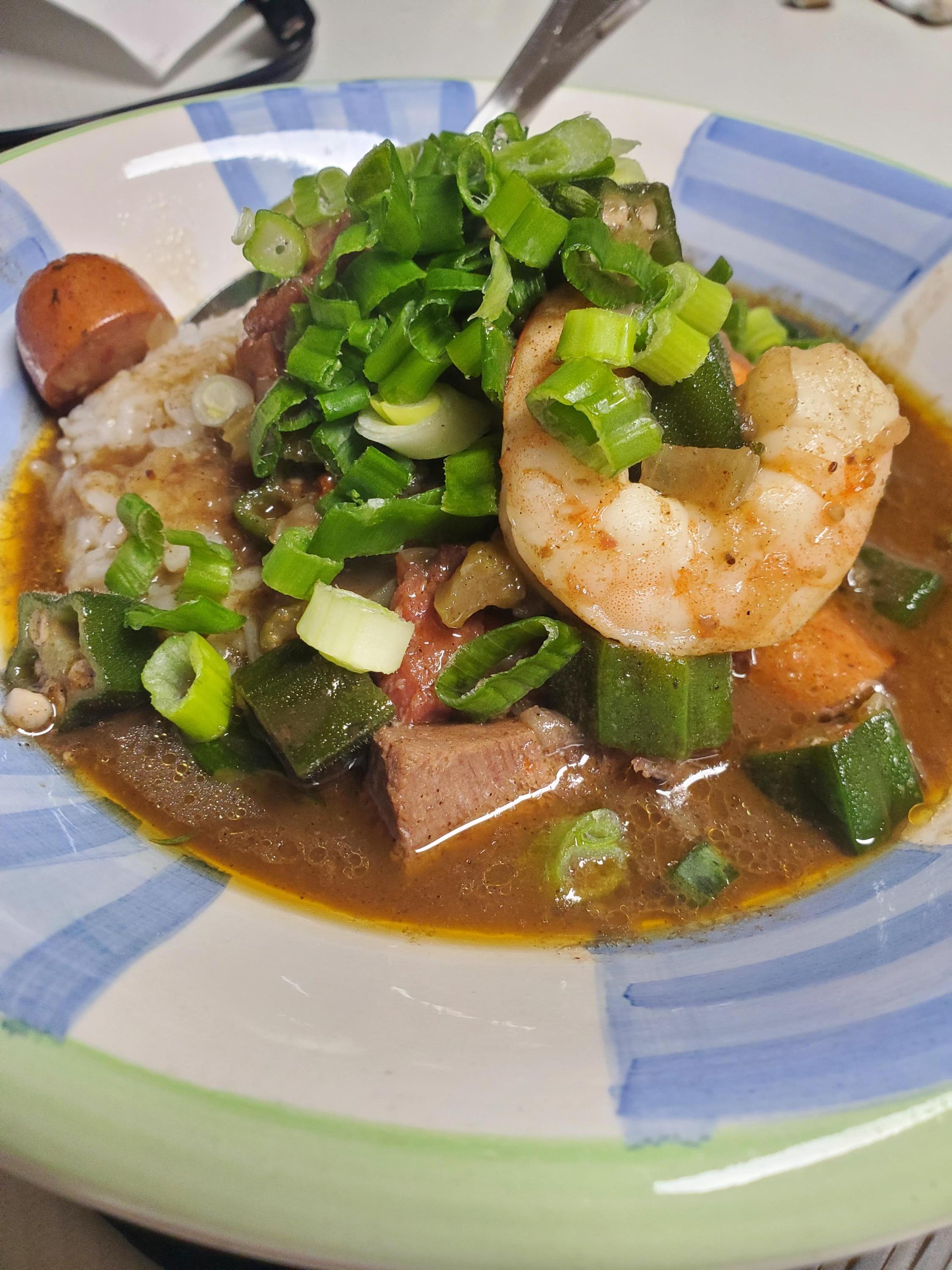 Gumbo has become my favorite "what's been in the freezer that I've been passing over" solution. Proteins in this version were-grouse, elk, pork, andouille sausage, and shrimp.