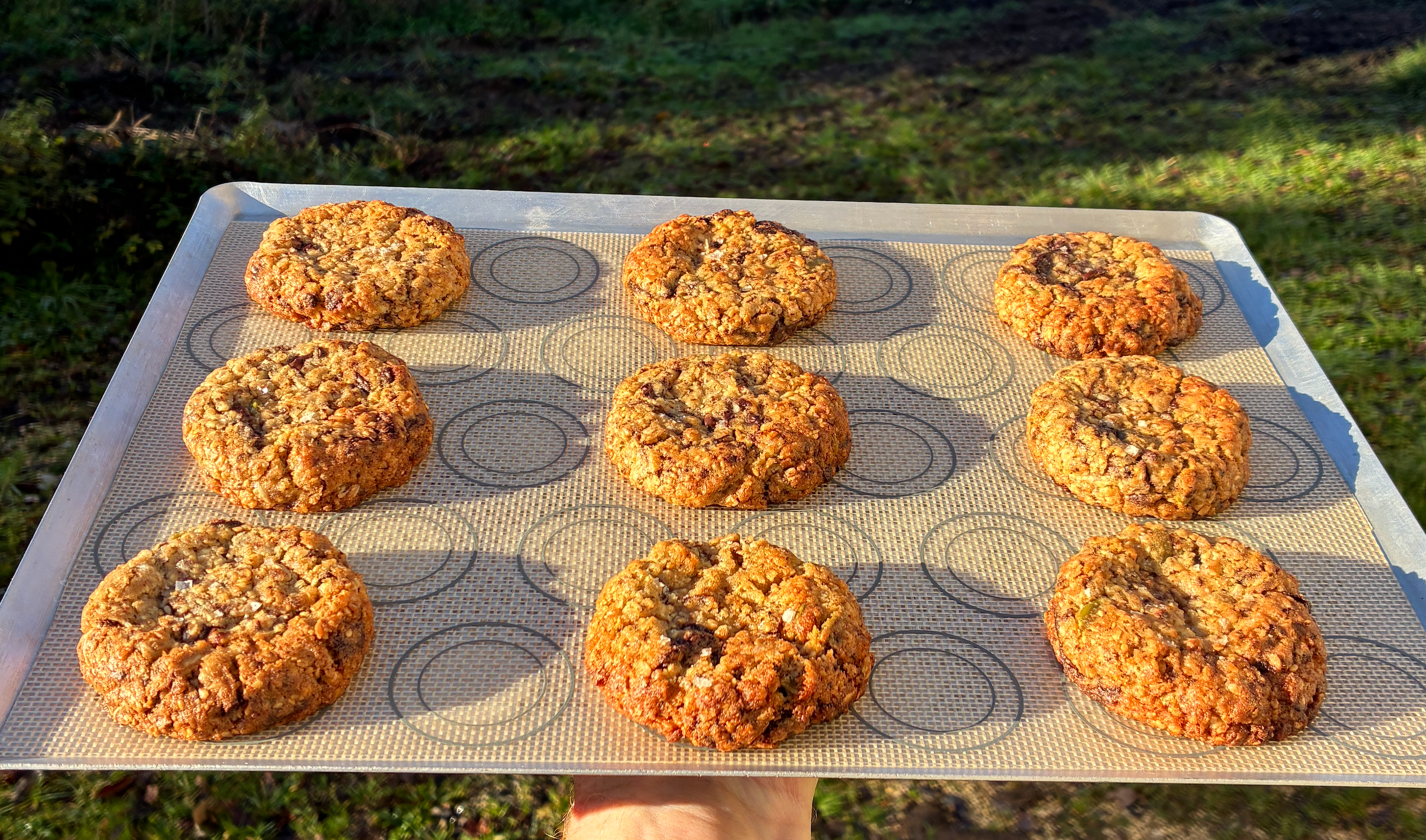 Mokonuts multigrain chocolate chip cookies (recipe)... A mighty fine cookie. Crispy edges with a chewy middle. Couldn't particularly taste the multigrains, but it worked as a whole. Recommended. -