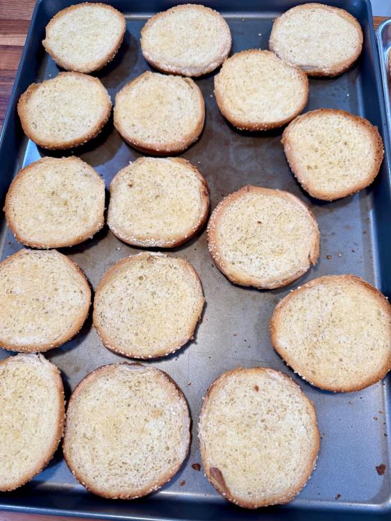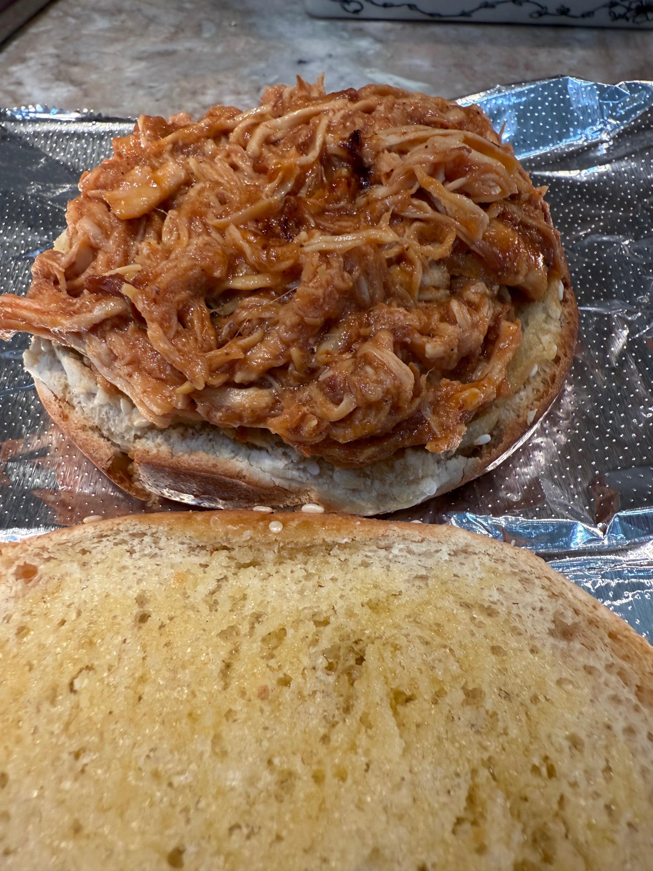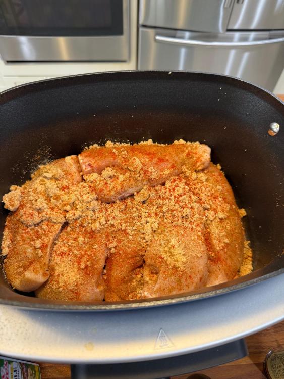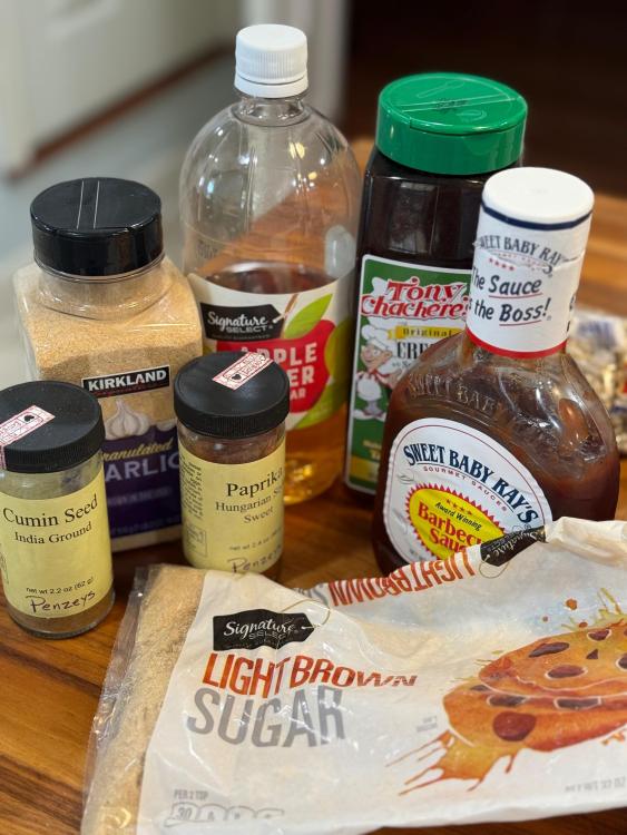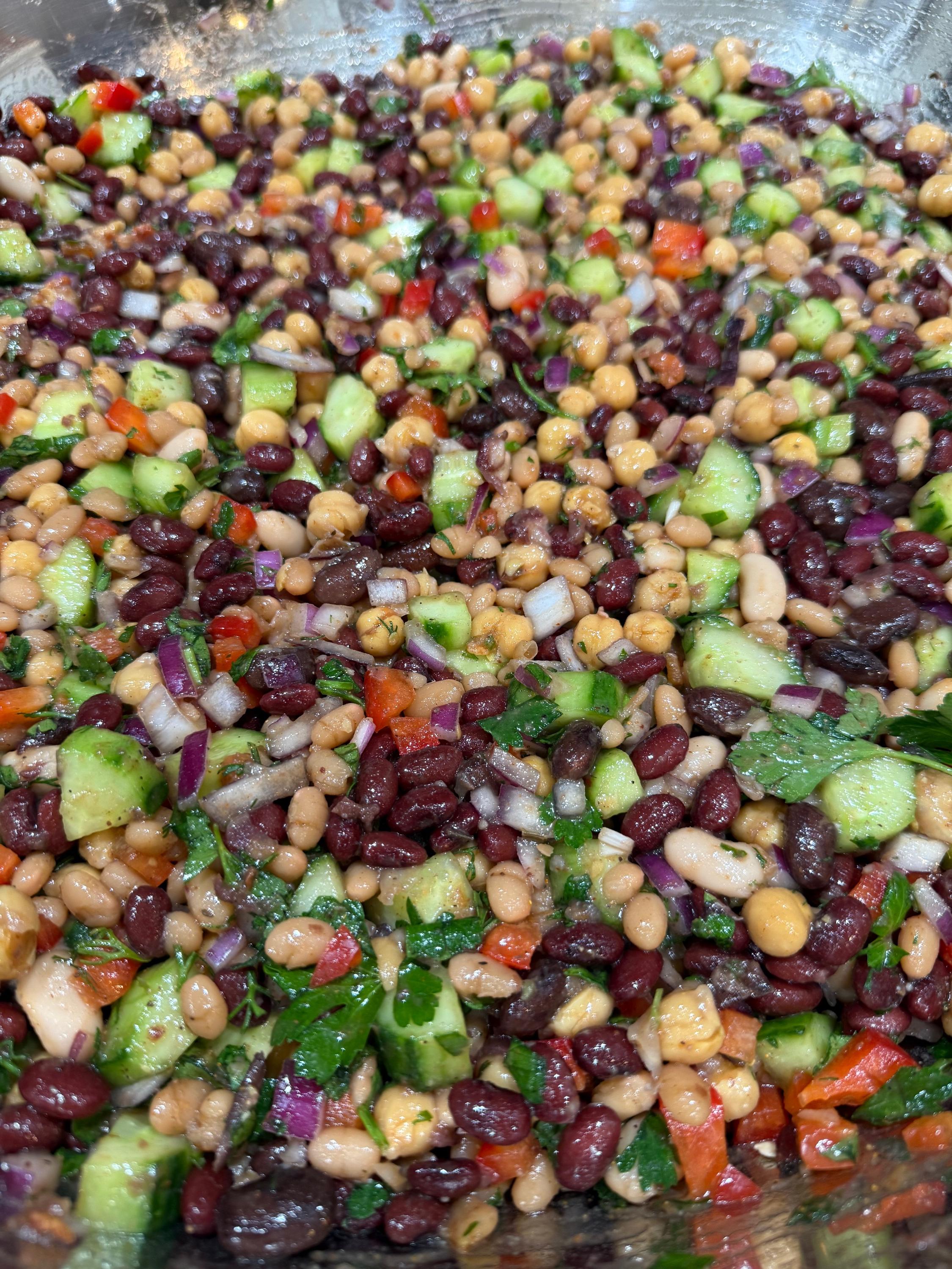 Yesterday’s CFM was delivered by 2pm. 24 boxed lunches of slow cooker BBQ pulled chicken sandwiches and bean salad. I won’t start with pictures of cooking the dried beans, but they included these two, plus a pound of small white beans. In the future, if I’m making bean salad with dried beans and not canned, I would not add aromatics or anything else that will “muddy” the salad. In the first pot of beans, which was the pinto-like bean, I’d sautéed diced carrots, celery, and onion. Regretting that decision, I used larger aromatics in the second pot so they could be fished out easily, and in the third, no aromatics, to see if the beans would look “cleaner.” They did, but too late for this salad. Four of the six English cucumbers, first layer. 1.5 large red onions, diced, soaked in water, drained. In addition to the three beans previously mentioned, 2 28 oz cans of garbanzo beans, and a couple of cans of cannellini beans were also used, plus two bunches of fresh parsley and one small bunch of dill. It’s looking pretty, but I wish I had more cucumbers because they add so much. Seasoned with salt, black pepper, garlic powder, paprika, cumin, Tony’s. Sorry I didn’t quote the posts, but @blue_dolphin, I did use Samin Nosrat’s Creamy Oregano Dressing! Thought I had pics of it, but since I made enough for an army, I’ll snap a pic a little later. I don’t have leftover salad, but I have leftover dressing. @Smithy, I bought both sliced black olives and sliced Kalamatas with the intention of trying each of those, as well as capers, and picking a favorite. At one point I reminded myself to take them out, and then never thought of them again!! Yikes. I was not ignoring your suggestion, just got caught up and forgot! @SLB, dilly beans sound dill-icious, but alas, my groceries were purchased. I could’ve run to the store and bought some the next day so I could’ve forgotten to use them, like the other suggestions. 🤷♀️ And dressed Besides chicken, this stuff went into the slow cooker. First layer of chicken in the slow cooker. After second layer, it was about 10 pounds of chicken, with enough leftover to feed my son’s family. They’re not food insecure, they just like Mom’s cooking. Right before putting the sandwiches together. There were three trays like this of lightly buttered and toasted buns. Before topping with dill slices.