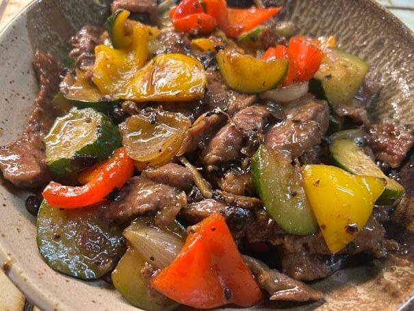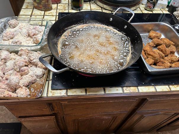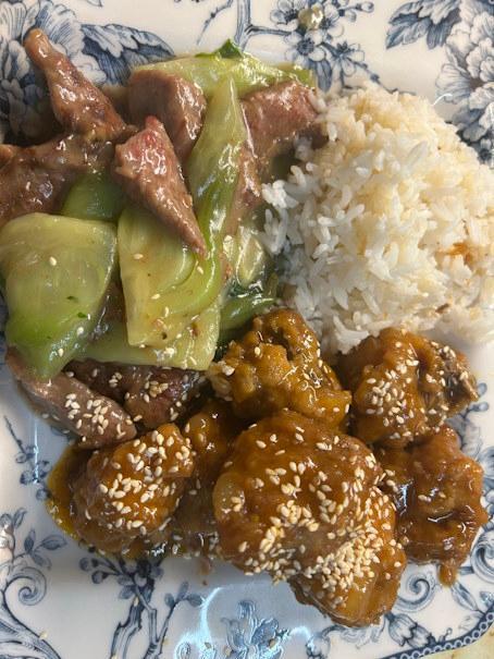 Easy meal for busy day! Black bean garlic beef & bell peppers. Tossed in remains of a zucchini too. Made my old restaurant's Sweet & Sour Spareribs (#13) for our garden club potluck. Many of the members are old enough to be former customers of our restaurant Soo's. They went over well! The ribs are dunked in egg wash then coated with cracker crumbs, Deep fried ribs are delicious fresh out of the oil. Simmered in water, vinegar, sugar, ketsup = Sweet & Sour. Hubby's plate at home, eaten with Beef & Shanghai Bok Choy and Jasmine rice
