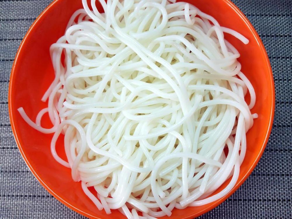 "What could be safer than a bowl of noodles?", you might think! Be careful. Noodles 🍜 are 面条 (miàn tiáo) in Mandarin. Falling tone then rising tone. Slip up and use both with rising tones and you'll have ordered 棉条 (mián tiáo), a tampon! These are rice noodles. For some reason I don't have a picture of a bowl of tampons.