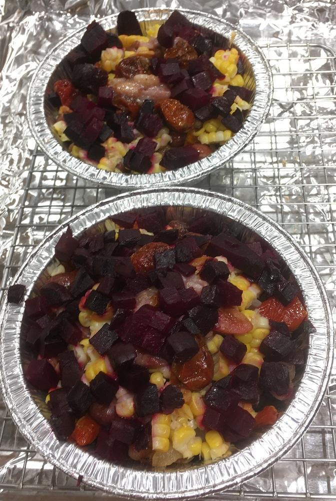 In this post, I erroneously identified the contents of the photos with a partial description of an other batch. That other batch was a lamb casserole done on 2025/12/21. I have 3 separate mentions of what might be in the batch but I believe it has: Lamb shank, stock, barley, Rancho Gordo Good Mother Stollard beans, onion, celery, carrot, fresh corn, slow roasted and fresh cherry tomatoes, and green pepper.