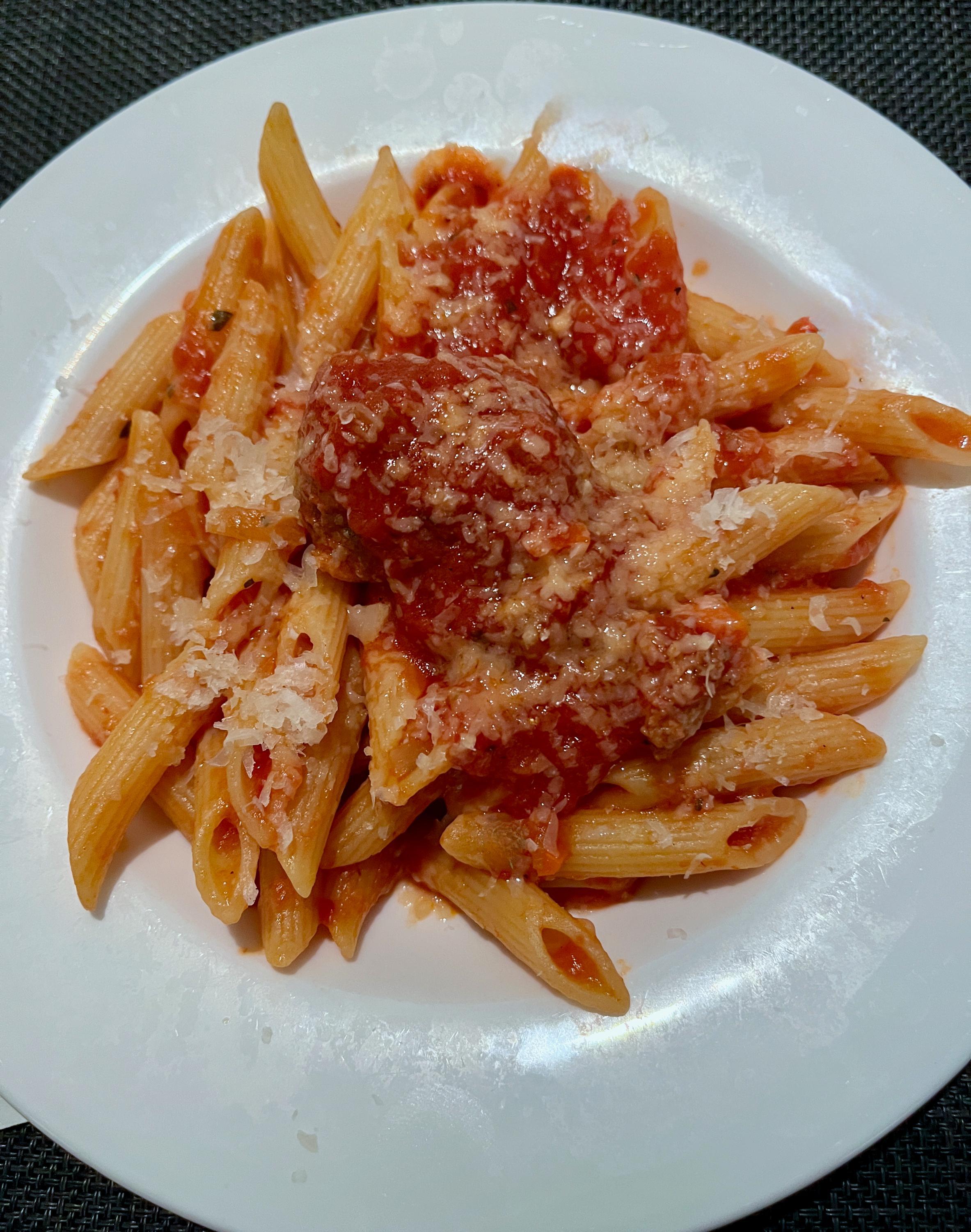 No pics of Christmas Eve dinner (gumbo) or Christmas Day lunch, but last night was finally a relaxed meal, and it was meatballs (frozen Costco) and baked ricotta, and air fryer roasted broccoli.