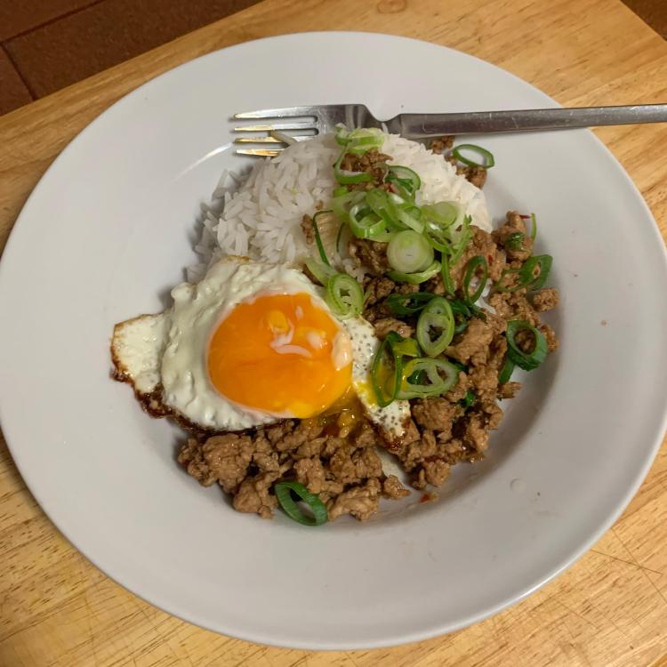 Miso eggplant on rice Things ina bowl with gochujang and minced pork Store bought ravioli, spinach and ricotta in a mushroom sauce. Salad because it’s so damn hot. Mangoes from our tree and tuna from a can. Things in a bowl stir fry edition Pad kra pow Another Saturday night with the Carolines. The dip is pesto, the cheese is smoked and the figs are divine.