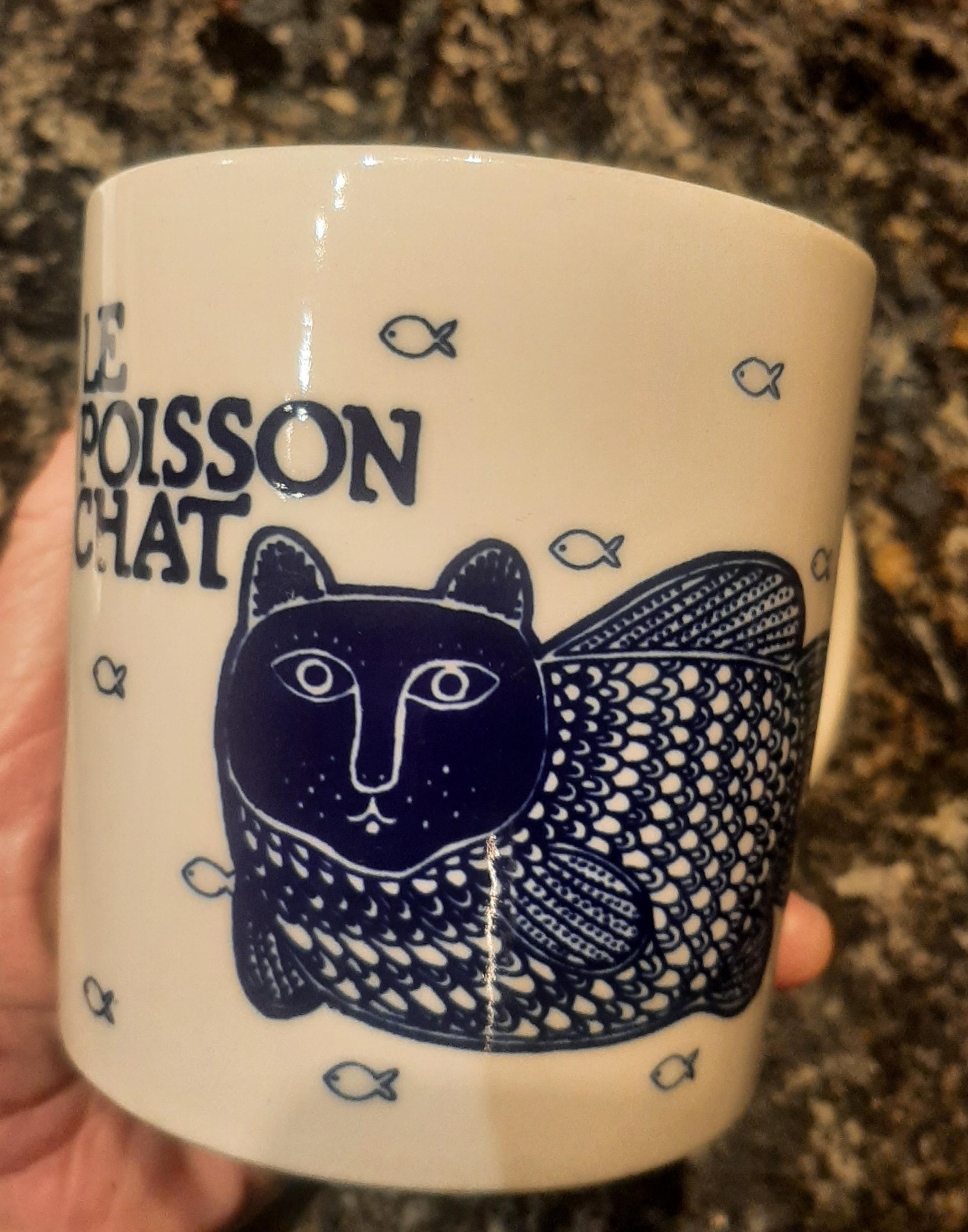 As much as I like cats (most of them, anyway), I'm unpleasantly allergic, and Ms Alex has been very kind about not insisting we get one. (When we met, Katie the Cross-Eyed Kitty was her companion.) We also both like dogs (ditto), but neither of us is willing to dog-walk no matter what our Michigan weather throws at us. However, we've compensated by collecting, and being given, a menagerie of stuffed and otherwise inanimate animals—including some of our very favorite mugs. So, before I post the pics, I'll ask: What are your favorite mugs? (Photos, please, if you can.) Is there a story, even a short one, behind any of them? Weird Kitty and Silent Kitty Atomic Kitty and Jiji (from Kiki's Delivery Service) Wistful Kitty So they don't get bored, they can chase birds and fish. Action Kitty, Pusheen, and Hello Kitty (yes, I know she's a little girl) approve