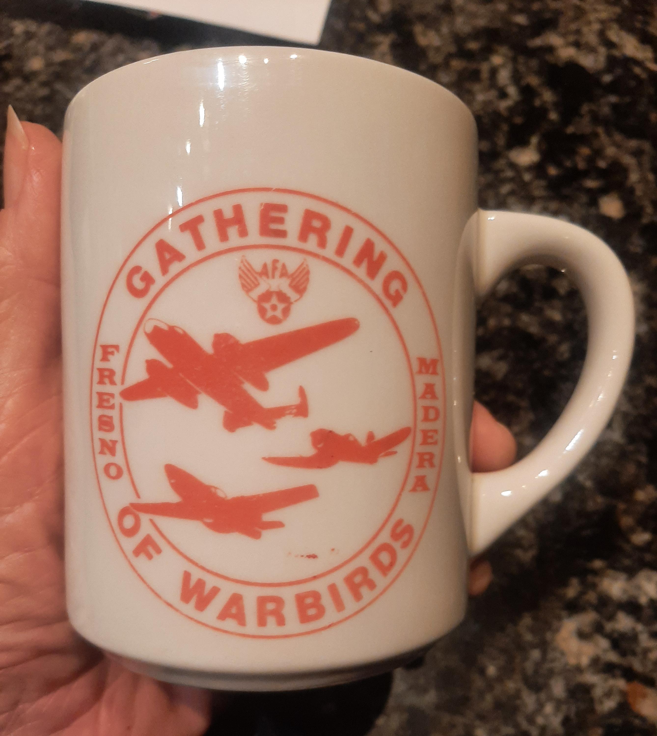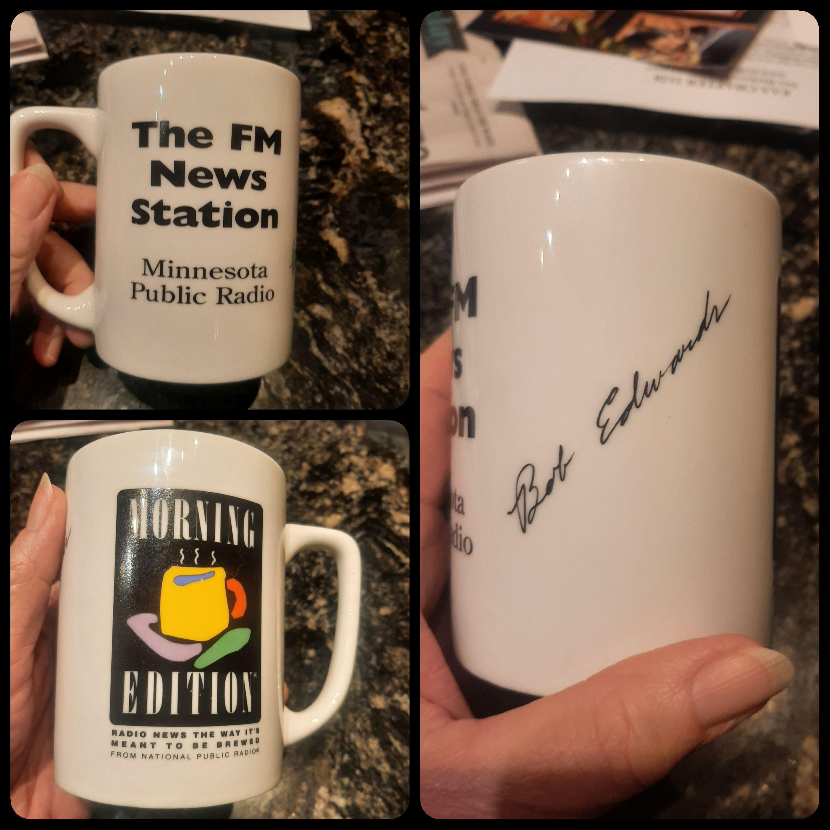 My mugs are mementos, and many of them are museum pieces of a sort, due to their age. For instance: this little guy was a thank-you gift for donating to MPR, donkey's years ago. Bob Edwards, one of the founders, is long gone. My first flight instructors were invited to more than one Shuttle launch, thanks to a couple of their students who became astronauts. One time they gave me this mug, purchased at the Kennedy Space Center gift shop after watching Stan Love and his fellow crewmembers launch into space. This museum piece goes back to the company where I settled into a long-term North Woods career. The company has long since been taken over by another corporation, changed names, and changed culture as well. I think of happy discoveries and growth whenever I see this one. My father was an aviation enthusiast, and bought this at an airshow near their home. When Mom and Dad downsized, I claimed this mug. The oldest mug in my collection is this beauty from Taylor & Ng. I have a bunch more of their designs tucked away in storage, but this one stays out and gets frequent use. I love the pun. Finally, this mug is my most recent acquisition. I've been to the West Denmark Fiddle School in Wisconsin 3 years running, and plan to go again next summer. The last thing I needed was another mug! But for $3 I couldn't resist. It makes me smile. The fiddle school is like a weeklong musical boot camp: some 60-odd musicians, broken into sets according to accomplishment level, learn about a dozen pieces of music by ear. We learn those pieces in segments, bit by bit, and put them all together as an orchestra for public performance, from Sunday afternoon until Thursday night! The music is beautiful, the instructors excellent and funny. Truth is, the mug I use most is larger than any of these...a Friends of the Duluth Library purchase. But the decoration is fading from frequent washing, and the mug is dirty right now. I'm not going to show that one here!