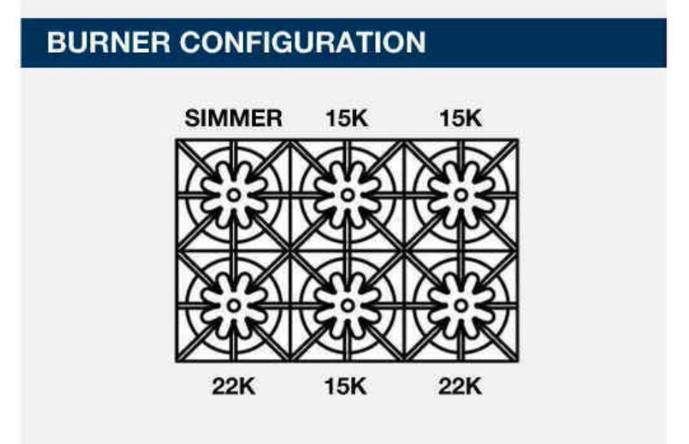 My apologies, I got it wrong, here is the actual stock burner configuration from the factory. Apparently there's an option to reconfigure the burners. Sometimes I overthink things but it seems to me that the two, 22K burners should be in the middle to better vent to the hood. Also, if I wanted to put a griddle on top of those two, much more convenient being centered. Also, I'm right handed so it seems to me that I would be better off with the simmer burner in the back right so I would not have to be reaching over burners to attend to a delicate sauce or such. New York State requires make up there for over 400 CFM so I think I'm gonna drop the blower size down to 600 CFM to make make up air easier. I didn't plan this out well enough so a lot more research is going to be involved for the make up air.