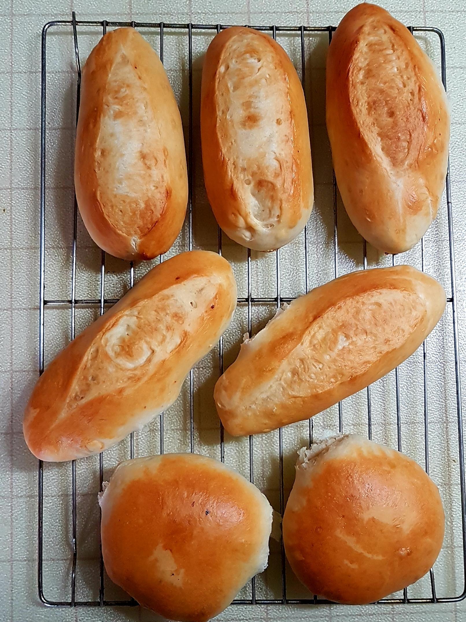 @Norm Matthews I've created more starters than I can count and I've always had good luck just with flour and water but eventually I, too, neglect them and they die. I'm not a good babysitter for sourdough. Also, I have the disadvantage that I make all my bread in a small countertop oven. I have a large oven that will reach the high temperatures but because of the tropical heat here I don't like to use it. I have also started using the preferment method and although it doesn't give me a full sourdough flavor it does make a big difference. The day before I make my bread I make a mixture of one cup white flour, one teaspoon yeast and about 3/4 of a cup of water. I usually make it about 18 hours before I am ready to bake. It may not be the best bread in town but I'm certainly happy with it. This was today's result. These are some rolls from last week. -