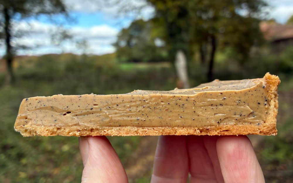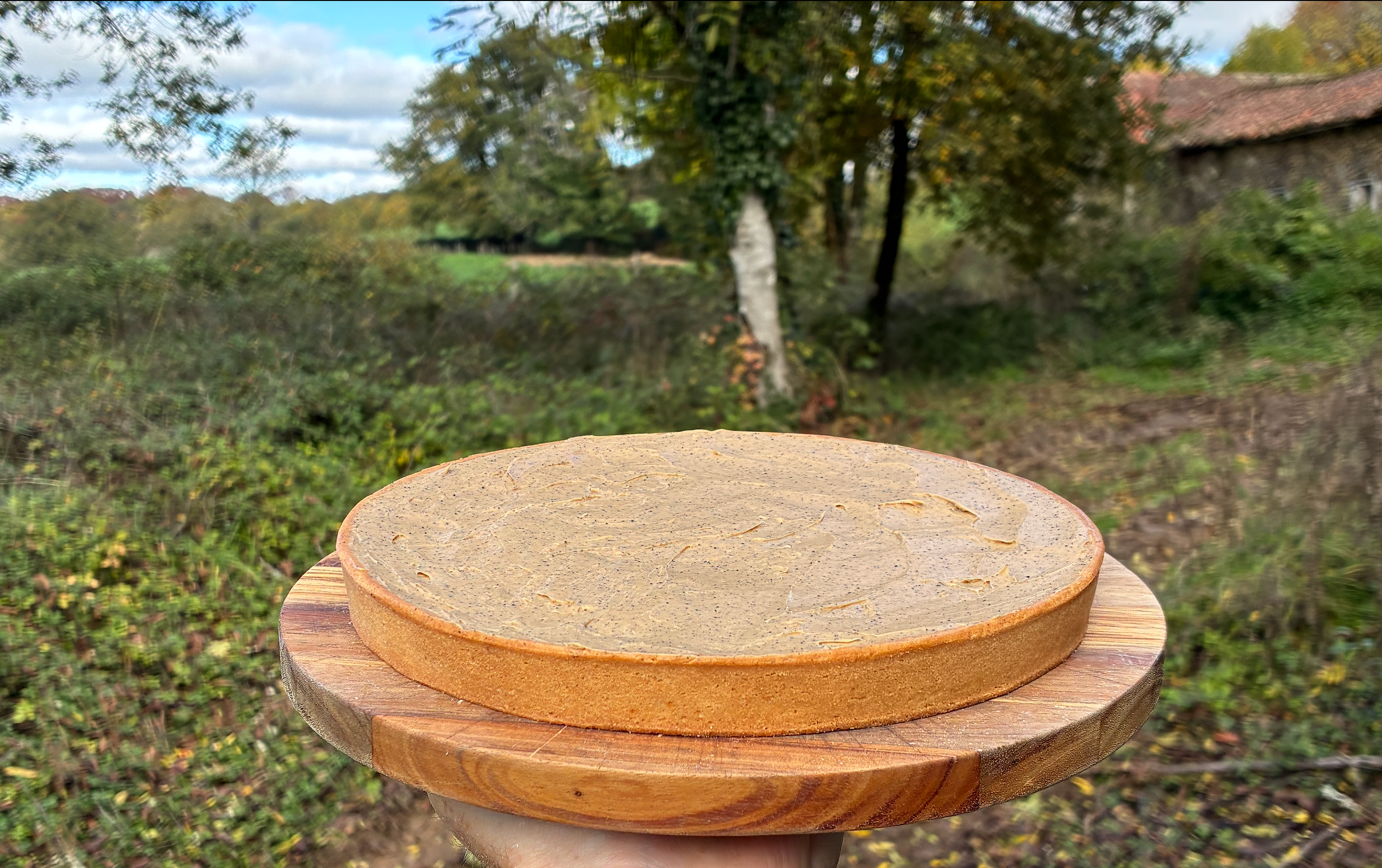 I had a bunch of egg yolks in search of a purpose so made a big bowl of baked custard from Ottolenghi. Well, it's more burnt custard really, due to the unusual way of making it (here, from last year). After eating a few spoonfuls I decided such a large quantity was far too dangerous to be within walking distance of, and was wondering what to do with it. A burnt custard tart seemed a reasonable solution... Because I was winging it, there wasn't quite enough of the mix to fill level with the rim for a clean, perfectly flat surface; a good excuse to make even more next time. -