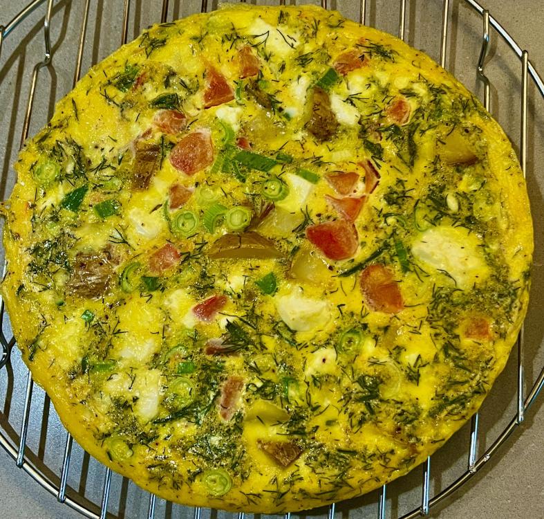 Shiitake Mushroom Frittata with Pecorino Romano based on a CI recipe - frittata started on the stove and finished in the oven and made with eggs, shiitake, milk, scallions, sherry vinegar and pecorino