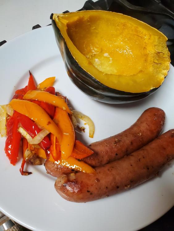 Last night I seared 2 duck breasts; one we made into a 'proper' dinner meal (see post in Dinner 2026). I saved the smaller 1 for today's lunch. fyi, I buy these at the Tucson grocery chain, Frys Foods; they come frozen 2 to a pack with no separation between them. Impossible to separate the breasts unless you thaw the entire pack. Lunch was the duck, fresh corn off the cob (surprisingly sweet for January), chopped green onions and cilantro. I quickly browned the flour tortillas in a hot and dry non-stick pan, immediately wrapping in foil to keep them soft. To assemble I slathered the open tortilla with hoisin sauce (and a few dots of siracha) before adding the fillings and rolling them up. We both agreed we liked this meal better than dinner last night.