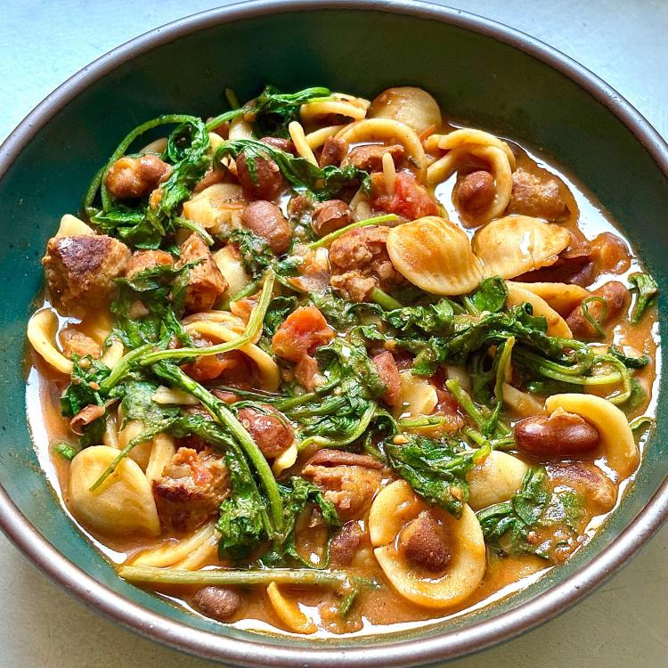 Some sort of mashup between a Beef with Broccoli and Jap Chae. King Oyster mushrooms, Chinese Broccoli and sweet potato noodles in a beef and broccoli sauce.