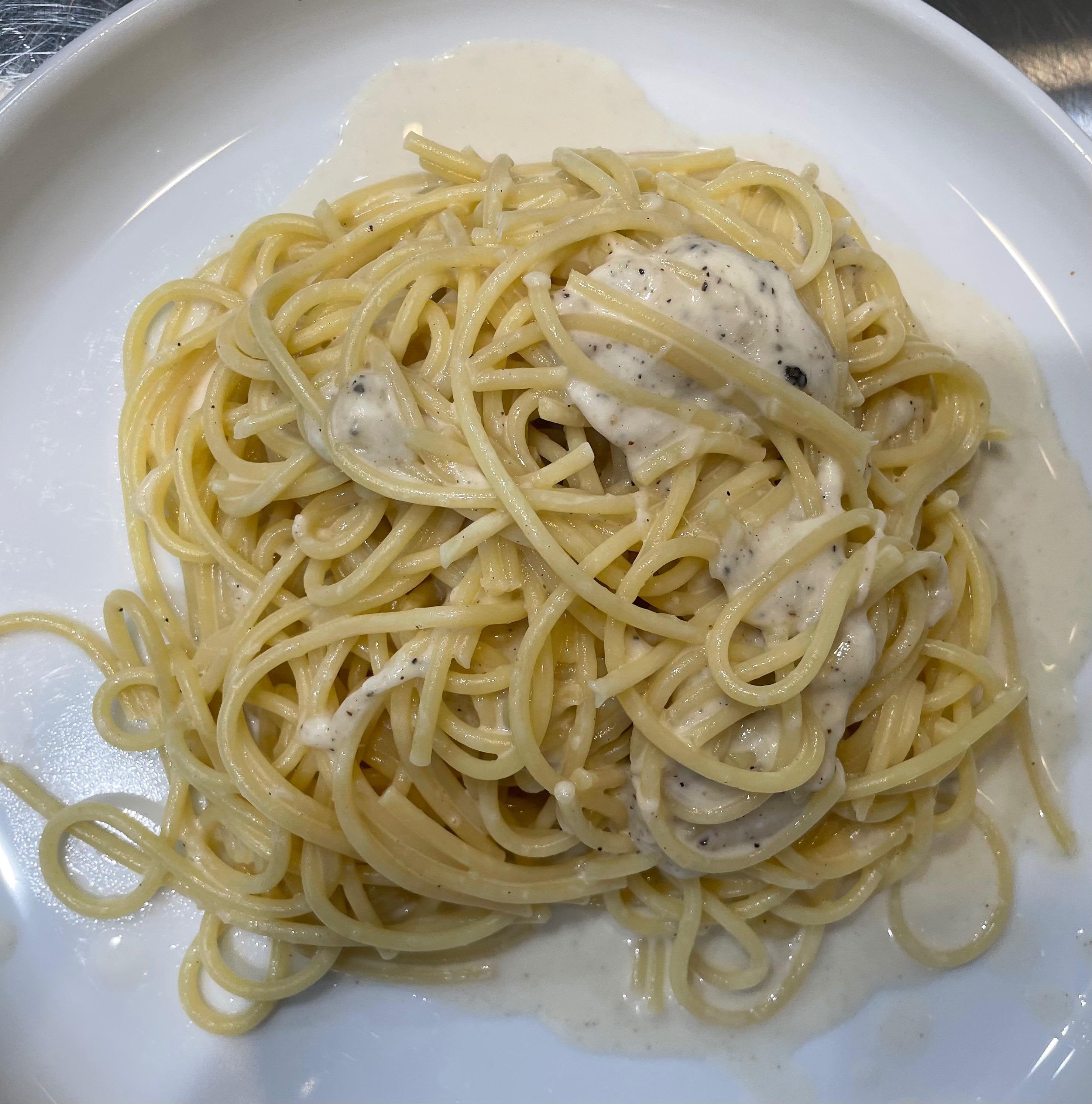 Cacio e Pepe from a CI recipe - interesting approach by building the base through finely mincing the pecorino in the food processor and adding a little bit of hot water to get a cheese “paste”. You use the cheese paste with the hot spaghetti directly from the pot, freshly toasted and ground black pepper and some concentrated pasta water (spaghetti cooked in a small amount of water) to finish the dish. Overall good flavor but the cheese sauce started to form a few small clumps once it cooled down a bit.