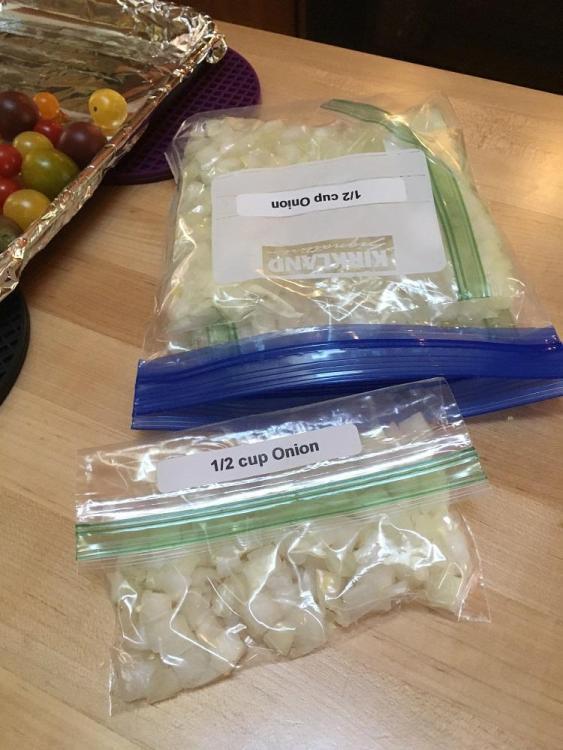 Taking a tip from @ElsieD here, I just diced up 6 cups of onion on my way to making @ElainaA's slow roasted tomatoes.