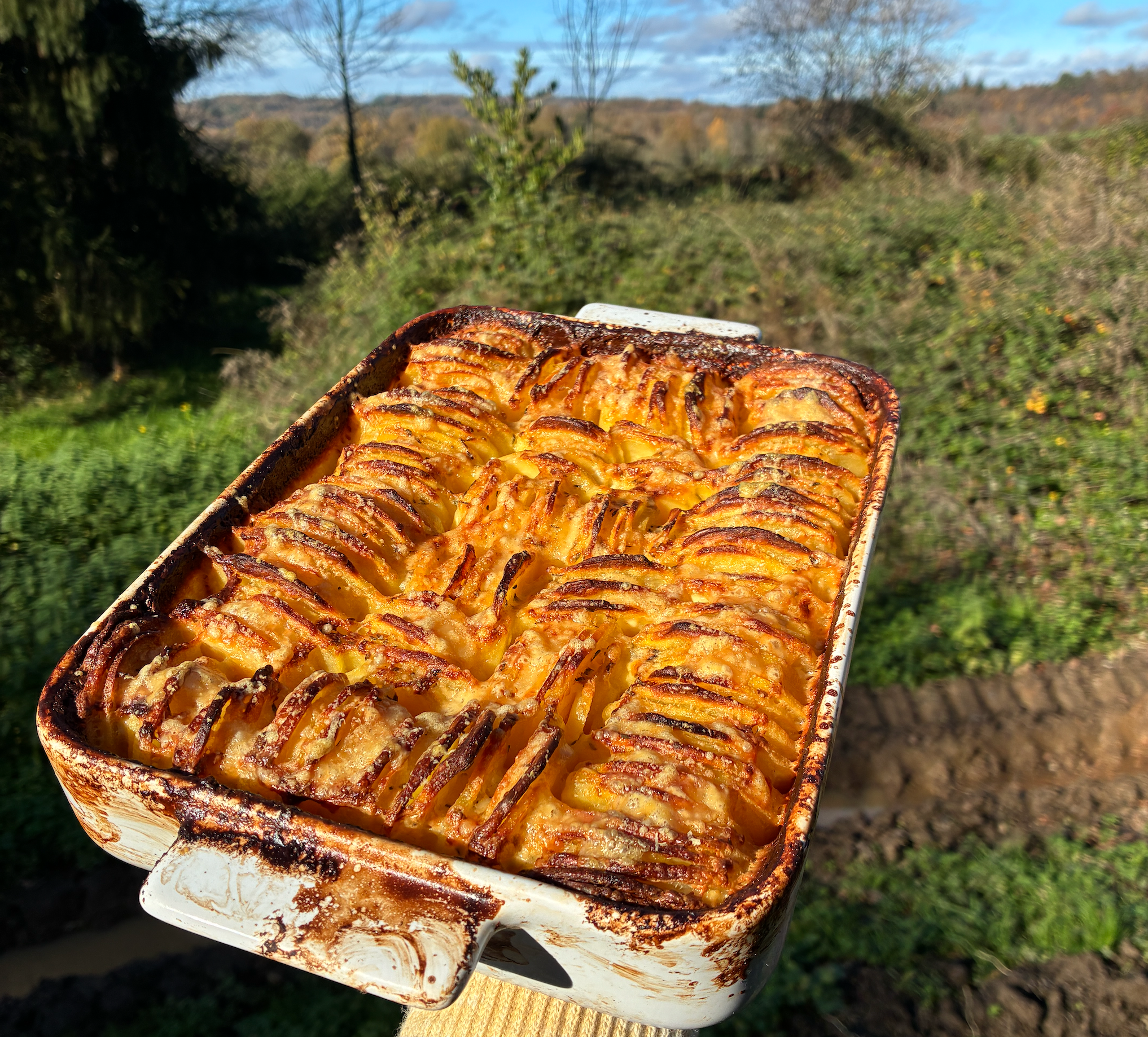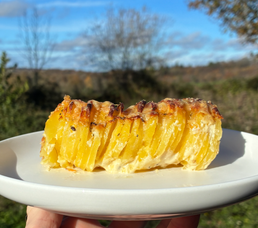 I've made that gratin, and I agree that it's delicious! Thanks for your link. I'm not generally a video watcher for recipes, but Kenji's discussion and demonstration were interesting. (I was fascinated to see him pour the sauce over the potatoes while the casserole dish was sitting atop the unprotected stove. That would be a sure recipe for me to spill onto the grate and make a mess!) I don't know whether folks who aren't NYT subscribers can see that video. In case they can't, here's a gift link to the recipe: Cheesy Hasselback Potato Gratin.