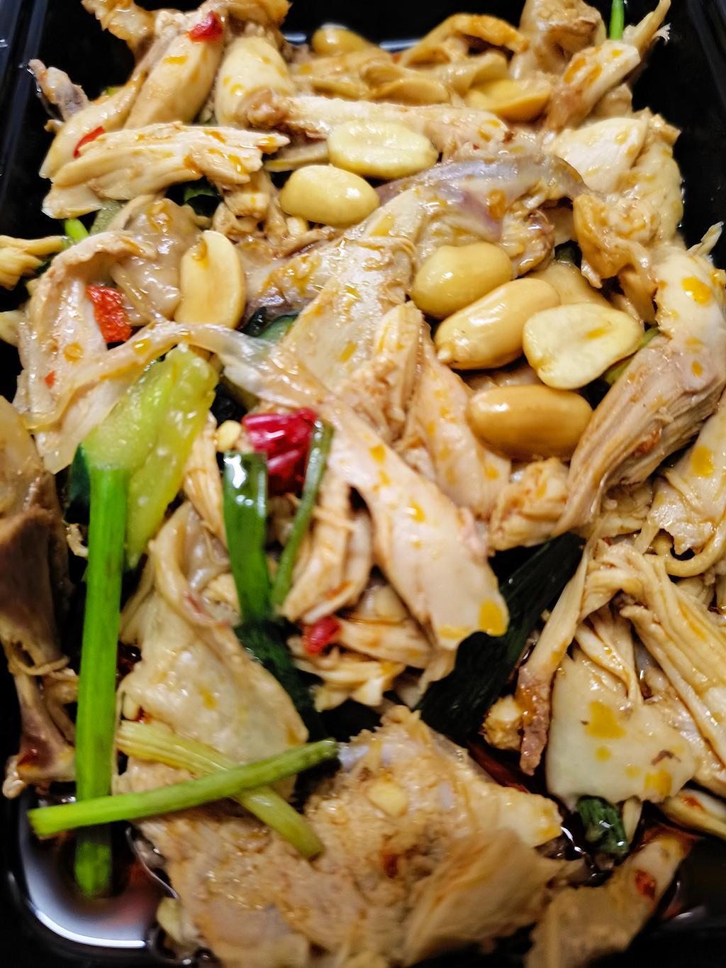 My first lunch of the year and boy, was I ready for it! 手撕鸡 (shǒu sī jī), Hand Torn Chicken in a spicy sauce. With rice. Originally, a Cantonese dish it has been adopted China wide and modified to suit taste buds in other regions. Not many Cantonese people would want my spicy version. Their loss!