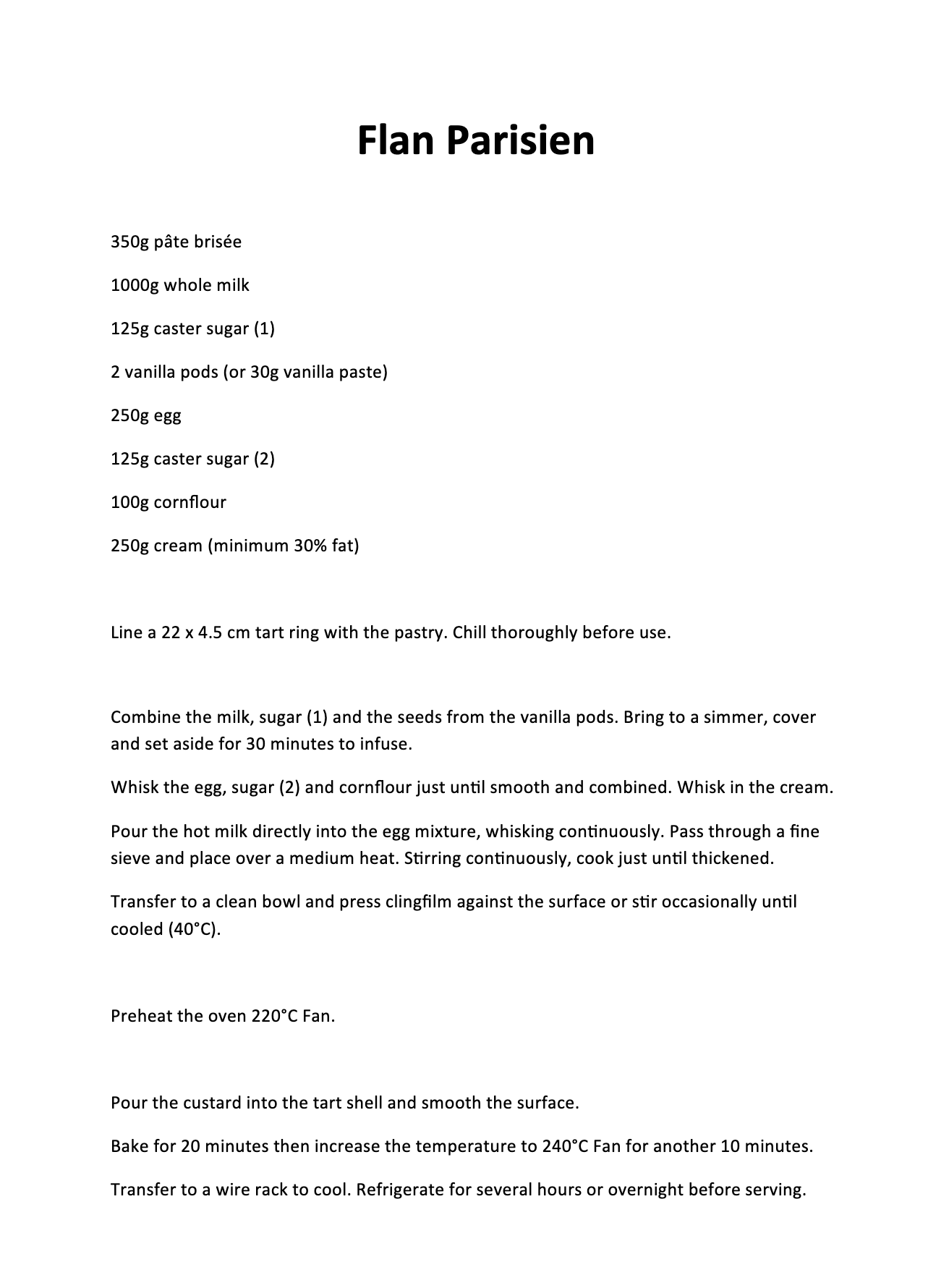 @TdeV Adapted from a Christophe Felder recipe... Translations for our North American listeners: pâte brisée = pie dough or non-sweetened shortcrust; caster sugar = superfine or regular granulated; cornflour = cornstarch; clingfilm = plastic wrap; oven temperatures are 450°F and 500°F; size-wise, this is for a pie just a touch smaller than 9-inch x 2-inch. -