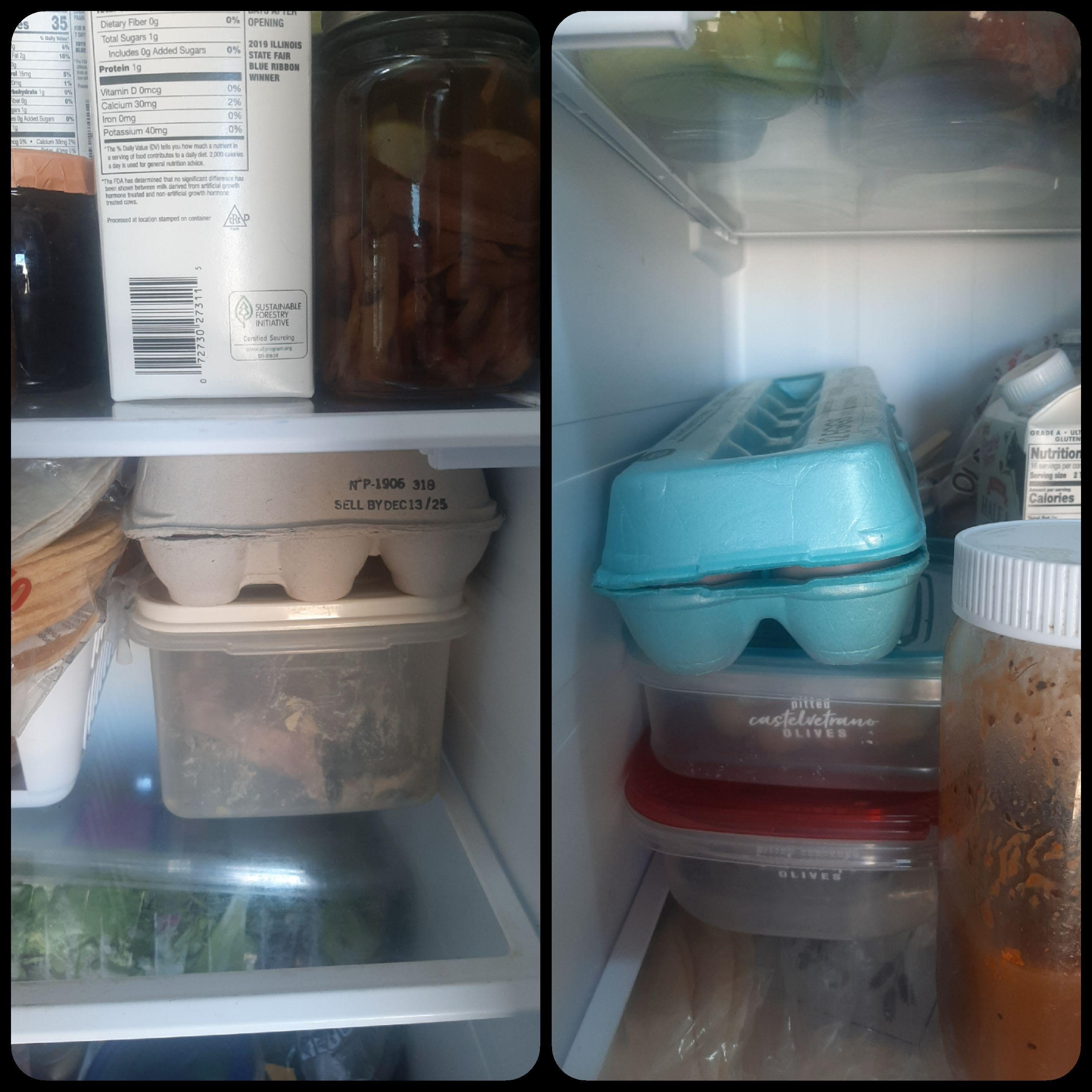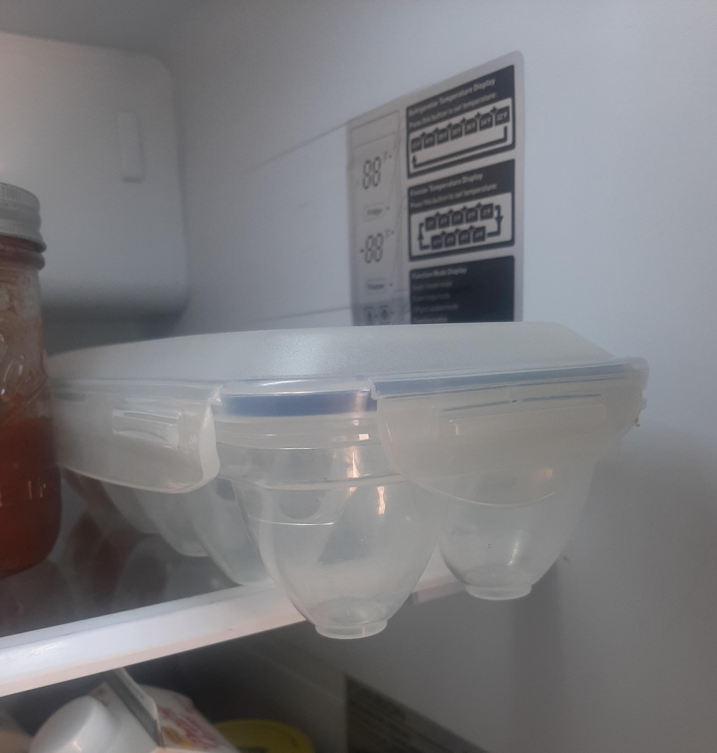 Numeric culture is funny, isn't it? There's the perennial question of why hot dogs and hot dog buns aren't sold in the same multiples in this country. I hadn't heard of selling things in multiples of 15, though. I actually have an egg container that I picked up at a garage sale last year, same idea as yours but for a dozen. If it falls out during a refrigerator avalanche however, the eggs will be just as broken as in the standard containers. Maybe the mess will be contained, but it would still be a mess. The more standard cartons are relatively secure now, I think. For sure, the 18 eggs on the left are fairly secure, because the container under that carton has a lipped lid. They'd both have to come out at the same time. The blue dozen-egg container on the right may be relocated before I move. I've learned the hard way to be careful opening cupboards and doors after traveling. A few days ago I was glad for that caution; when I parked after an especially rough road, I started to open the refrigerator door and could hear contents shifting. BOTH those cartons you see in the collage above were trying to slide out, along with a couple of condiment jars! I managed to save the eggs and have relocated them since that near-disaster.