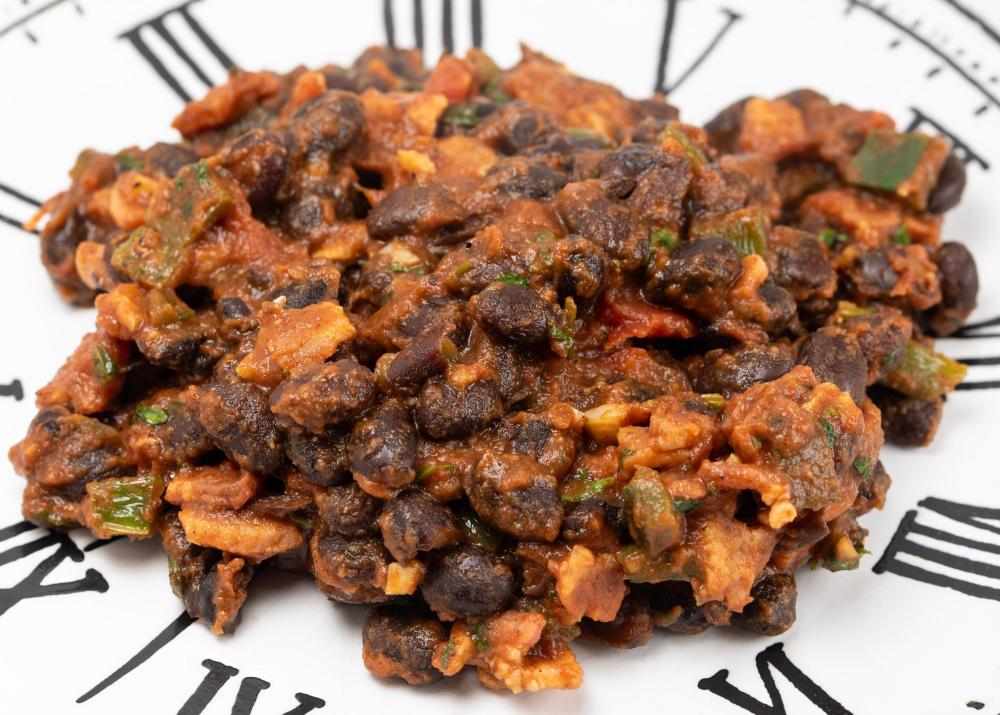 Potato soup with chipotle, crushed tomato, onion, garlic, chicken stock, cilantro, and a dollop of Greek yogurt Black beans with bacon, garlic, crushed tomato, ancho chile powder, roasted chile Poblano, and cilantro