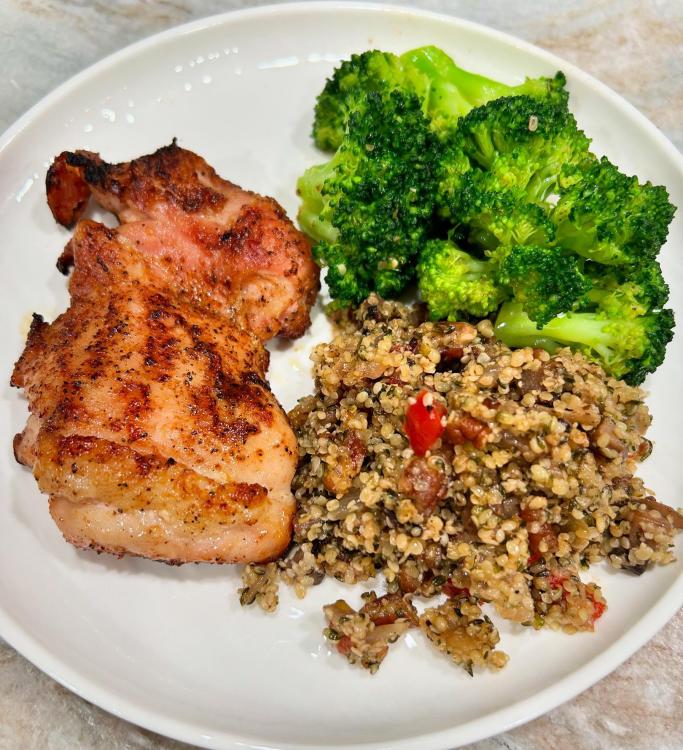 Last Christmas Eve was the first annual Mimi & Murphy making cookies for Santa event. We will repeat that, and have a simple gumbo for Christmas Eve dinner. We’ll be having Christmas dinner at son & DIL’s house, along with her parents, sisters, and their families. Everyone brings something, and mac and cheese and cookies were requested. I will happily comply. My DIL’s father is Lebanese and he will be making a couple of dishes that I look forward to trying. I’ll probably also bring a low carb faux wild rice pilaf, using hemp hearts in place of wild rice. It consists of diced mushrooms, chopped pecans, diced onions and red bell pepper, garlic, and hemp seed hearts. DIL and her mom and sisters enjoyed it last time I made some. And it ends up looking like this: The cookie tray will include lemon crinkles, dark chocolate dipped peanut butter, dark chocolate and cranberry oatmeal cookies*, salted vanilla toffee cookies, and the ubiquitous (but delicious) chocolate chip (with flaky salt). I’m not good at making pretty cookies, but I can make some that taste really good! *Might be replaced with iced gingerbread oatmeal cookies.