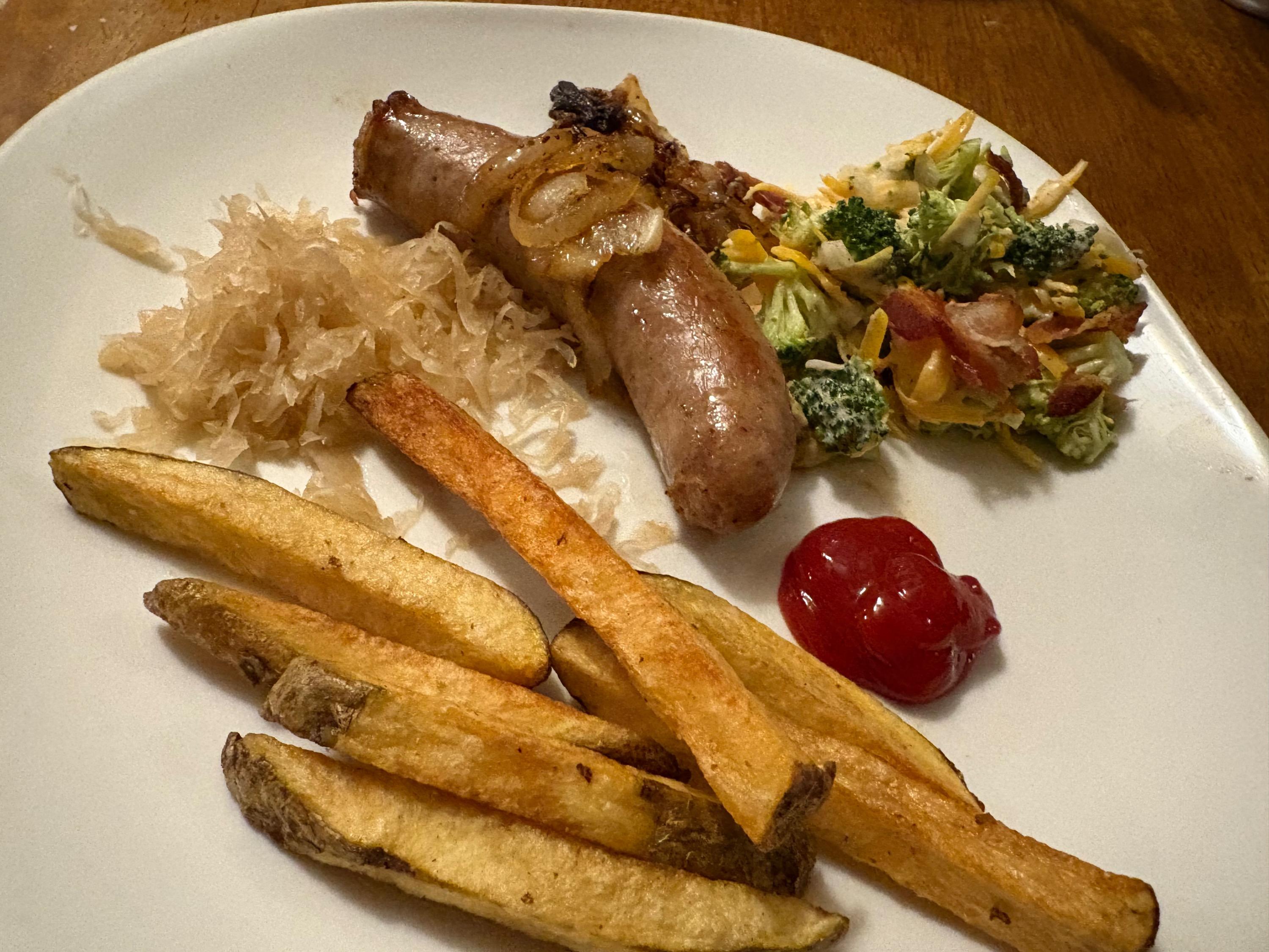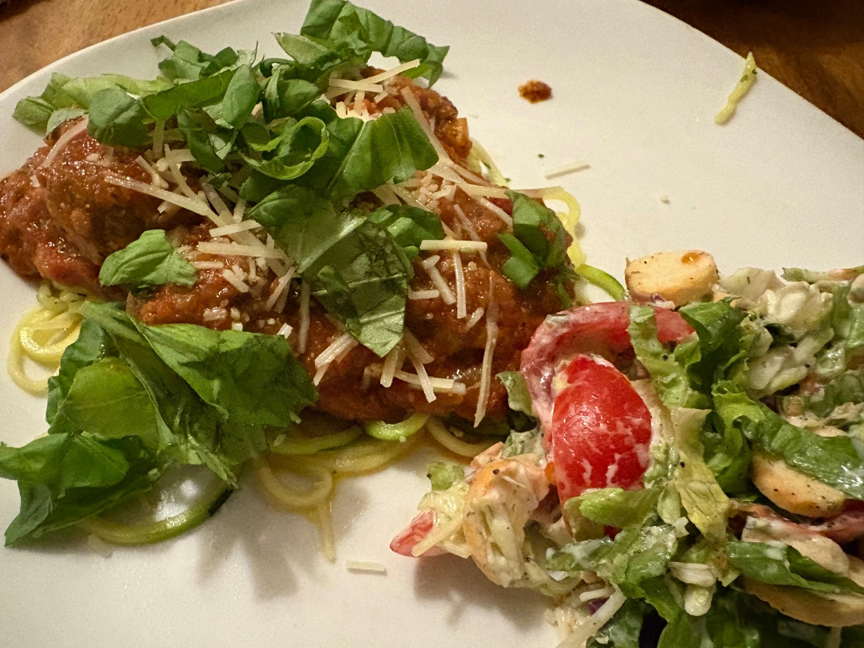 Well that is just beautiful! There is a law that states that we are not allowed to eat health food during any type of snow, ice and severe cold. Looks soooo good. I want your shrimp Alfredo--I might just have to make that tonight. Like a lot of us we have snow and bitter cold going on. Today is supposed to be the last of it and then highs get into the 40's. I'm ok with that but I'm sure not ready for summer. Give me some cooler temps until at least March please I re-ran across that Vinegar Chicken recipe that I love so I did a smaller version of that. Doesn't look like much but it was good. Lamb stew that REALLY hit the spot. Fried chicken using what I didn't use for the vinegar chicken. My plate looks really puny lol. Broccoli salad, fries, kraut and German sausages from the Amish market. Chicken quesadillas Zoodles, my venison meatballs and sauce and salad under a mountain of basil.
