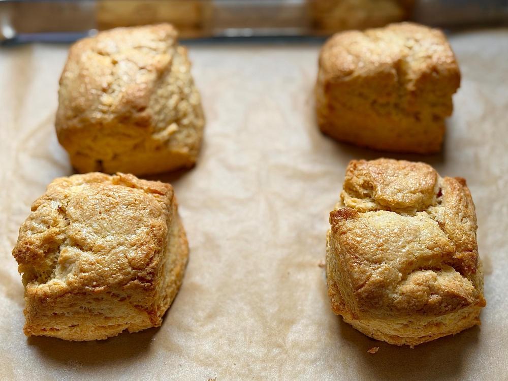 This bowl of beige is the Oyster Pan Roast with Yuzu Kosho Cream and Spicy Cornmeal Biscuits from Sunlight & Breadcrumbs by Renee Erickson. I tried my best to make it look appealing but it’s still a bowl of beige, however delicious. And the combination of cream, yuzu kosho and oyster liquor is pretty delicious! Here are the biscuits on their own: I’ll never be a biscuit maven but these weren’t bad and should provide me with a few smallish breakfast sandwiches.