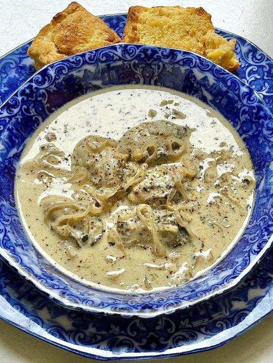 I've definitely been doing really bad about about sticking to the low carb/no carb thing. I hope I'm not slowly killing Ronnie one French fry at a time lol sigh. It's just hard in the throes of winter. I want alllllll the comfort foods and that means carbs. So, I hope I'm forgiven by his doctor. But I bet I'm not. Anyway. We've finally climbed out of the deep freeze. The snow that hasn't melted will today. I've turned the heater off that was by the pipes in the basement and turned the faucets off from the incessant dripping that was driving me crazy--but that's better than busted pipes. I better order my seeds for the garden within the next week or so because spring is fast arriving. Picked up a Sam's rotisserie chicken and got several meals out of it --quesadillas was one. Zoodles with the last of my venison meatballs and salad Really wanted some seafood so I dug out some of the oysters from the freezer--I have enough left for one more meal. Did some shrimp Alfredo with a mix of zoodles and regular pasta (I blame @Dejah--her shrimp alfredo up yonder looked so good). I had one jar of "apple" pie filling left that I canned --it's actually zucchini-so I made a galette for dessert Pizza night because I had left over sauce Chicken wings, squash and a cabbage salad Jalapeno sausages and fries Last night I climbed back on the no carb wagon and did SV'd pork chops, salad and cheesy cauliflower and broccoli