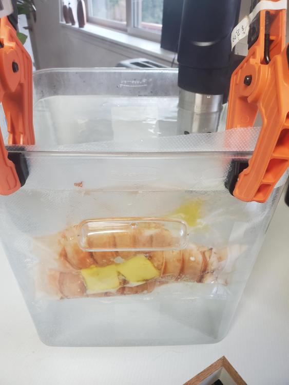 Thanks to the assist from Shelby upthread- sv lobster tails No plate pics but served with roasted sweet potato