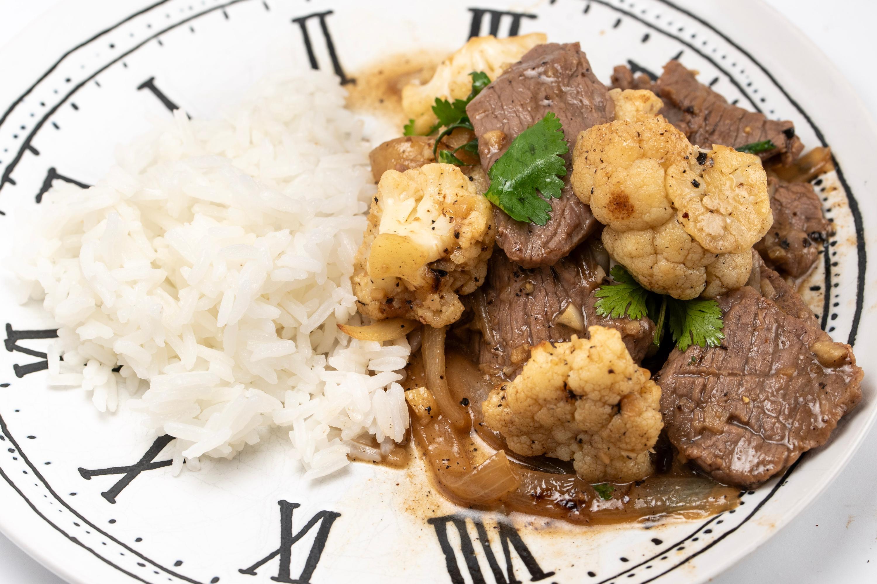 Vietnamese tonight for a guest with a mild palette. I can't remember the last time I cooked a meal with no chiles whatsoever. 😬 Napa cabbage and shrimp soup: Soup stock was sauteed onion and dried shrimp with fish sauce and salt. Simmer Napa cabbage until done and then poach shrimp at the end. Finished with white pepper and scallions Beef stir-fried with cauliflower: Marinate thinly-sliced strip steak with fish sauce, soy sauce, black pepper, and cornstarch. Stir-fry onions and garlic, sear the steak, and remove. Stir-fry parboiled cauliflower florets until heated and then mix everything together until the steak is just done. Garnish with cilantro