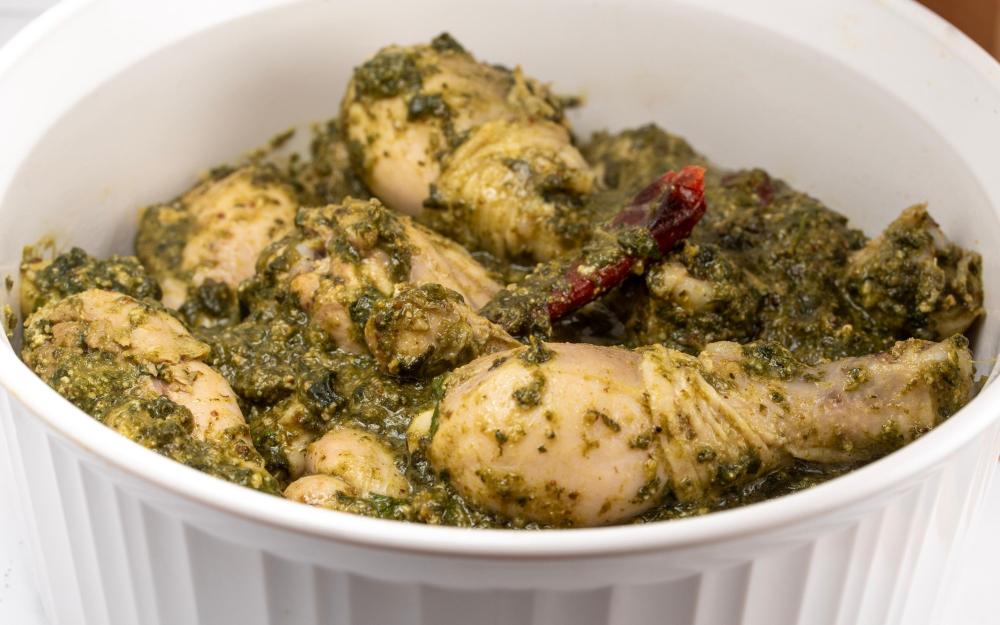 Chicken in cilantro, spinach, and mustard sauce: Saute bay leaves, cinnamon stick, cardamom pods, and whole cloves. Brown chicken drumsticks in the flavored oil, and then simmer with yogurt, black pepper, and cayenne. Finish with a blended sauce of ginger, green chiles, cilantro, spinach, and stone-ground mustard. Cucumber raita: Thinly-sliced cucumber, yogurt, sliced shallots, minced green chiles, shredded mint leaves, and cilantro. Garnished with cumin and smoked paprika (should be cayenne but dinner guests were chile-averse). Basadi dal: Simmer red lentils in water until tender. Fry sliced onion in ghee then add panch phoran (equal parts freshly-ground cumin, black cumin, aniseed, coriander, and fenugreek), turmeric, paprika, cayenne, cumin, and crushed tomato. My favorite dal of all time.