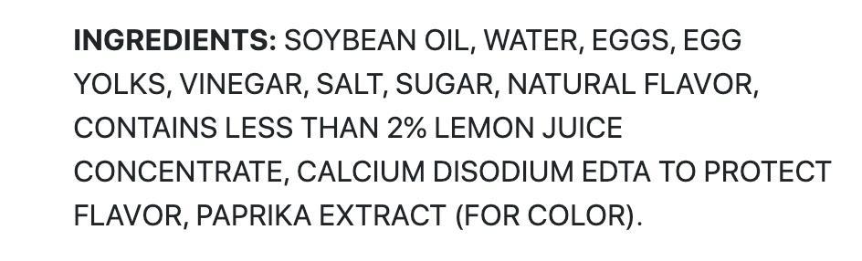 for completeness sake , Im adding Burman's the Aldi mayo : https://www.prospre.io/ingredients/burmans-real-mayonnaise-51897 Ill add my Dukes vs Aldi ( Burman's ) when I open a fresh jar of each at the same time. that Dukes has to last me a long long long time if i like it , as its up to $ 5.99 B is probably 3.49 , just a guess
