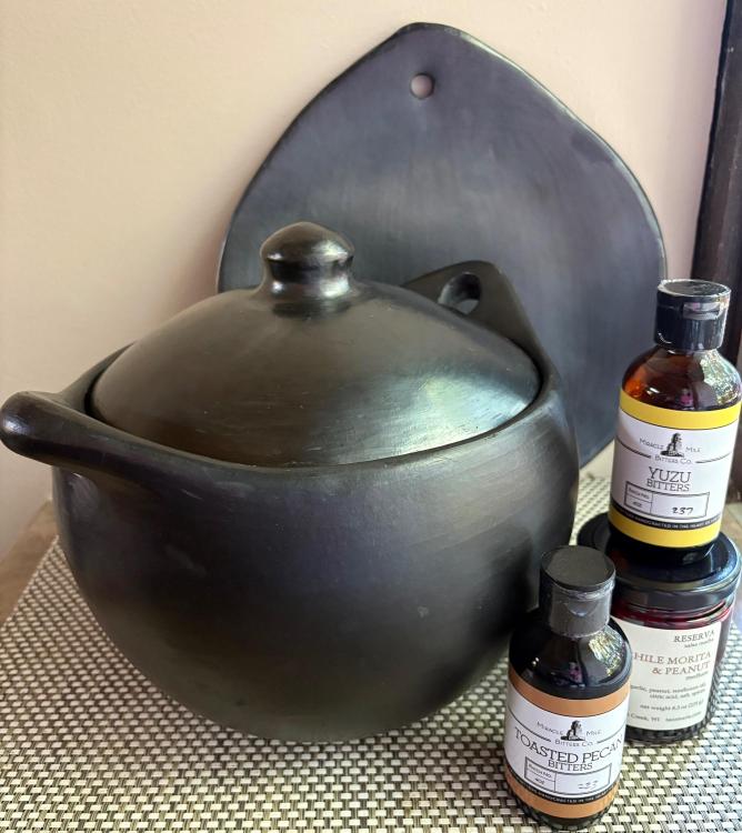 Over here in the Lunch topic, I detailed the menu from the “Supper with Friends) meal at the Rancho Gordo Heirloom Bean Encuentro held this weekend at Alta Baja Market in Santa Ana, CA. I had a little time to shop at the market and picked up a few items: I got a La Chamba soup pot and comal, two bottles of cocktail bitters from Miracle Mile Bitters - toasted pecan and yuzu - and a jar of Taco Maria Chile morita and peanut salsa. Looking forward to trying out all of them.