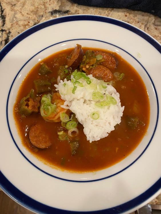 Gumbo. Probably with a number of hideously inauthentic qualities. But I did try. And the family loved it