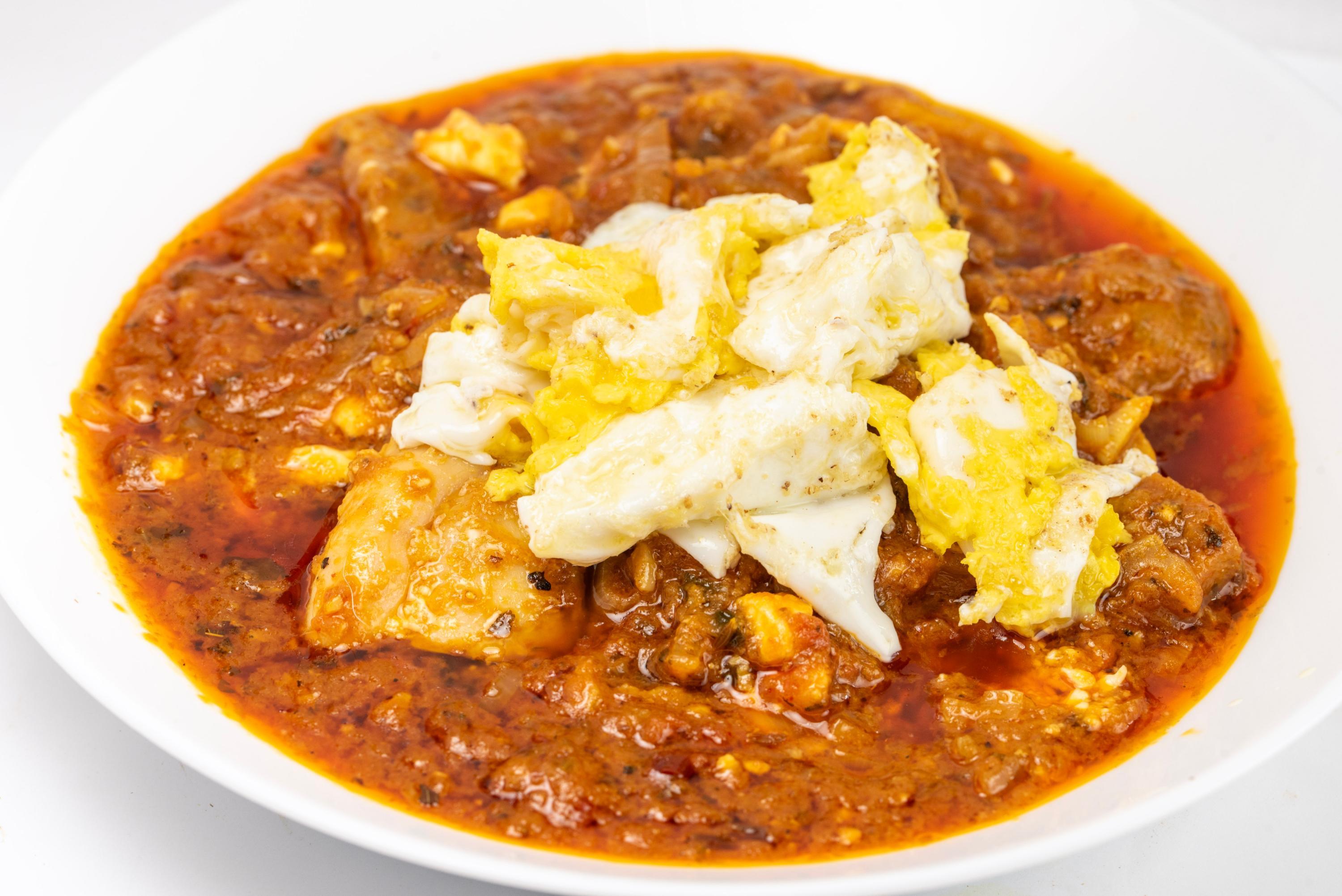 Leftover Desi murgh (special chicken curry) enhanced with minced chipotle, fish sauce, Mexican oregano, and crumbled feta. Improved an already tasty dish, imo. When I tried to top with an over-easy egg I learned that our formerly non-stick pan no longer performs that function. 🙄
