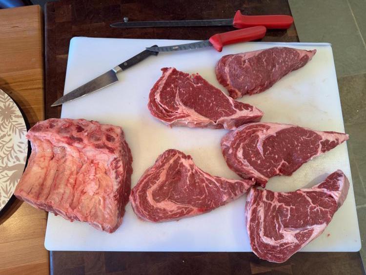 my partner @ WHPS gets a standing ( choice ) rib roast @ Stop&Shop around Christmas , as they are on sale . He was way ahead of the revised Red Meat Pyramid. note the price : he is going to do the ribs today or tomorrow on the Yoder. and SV the steaks . Lucky Him.
