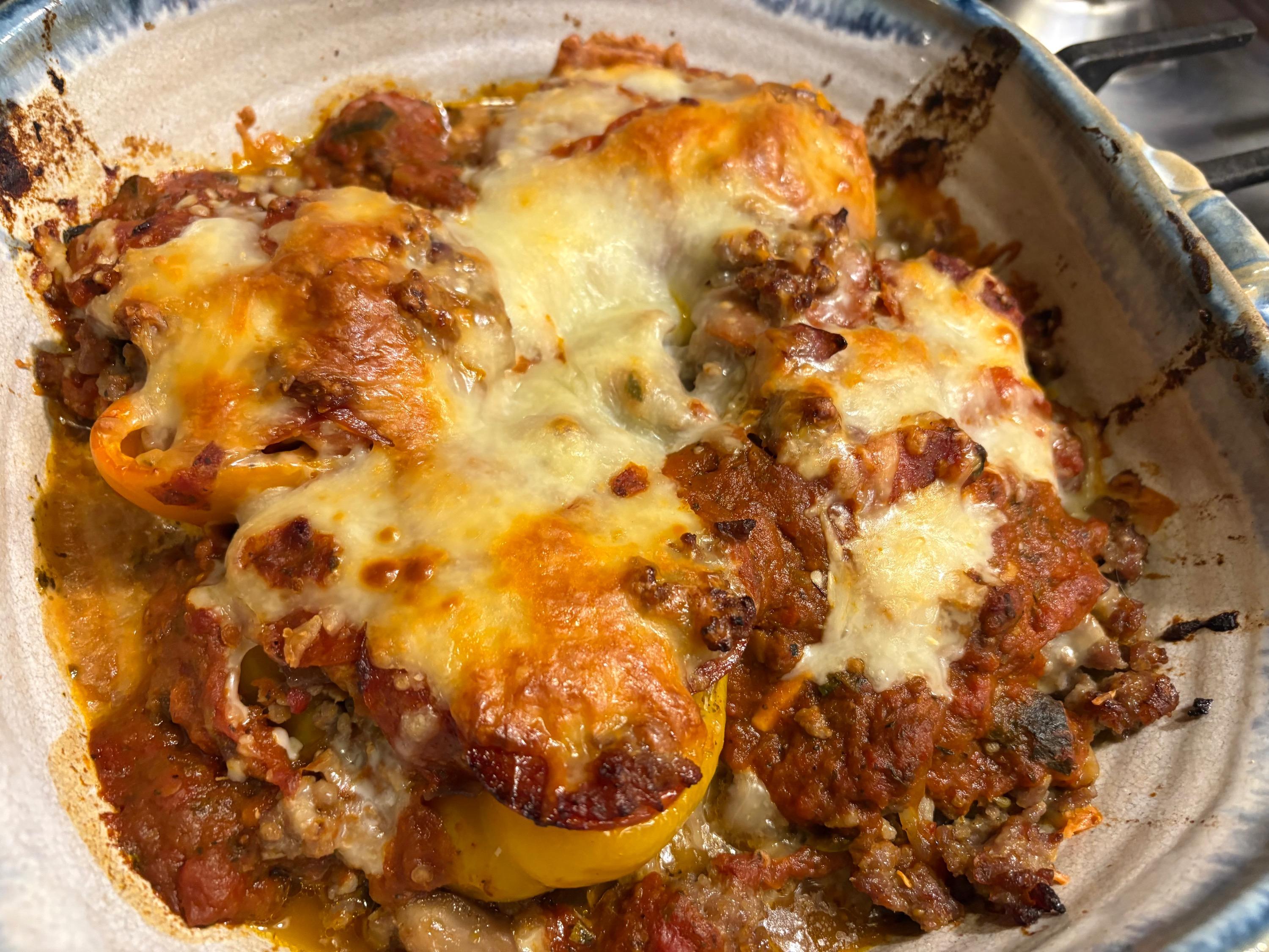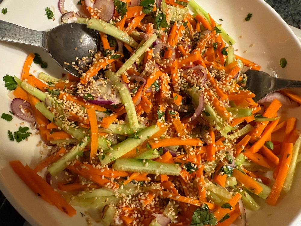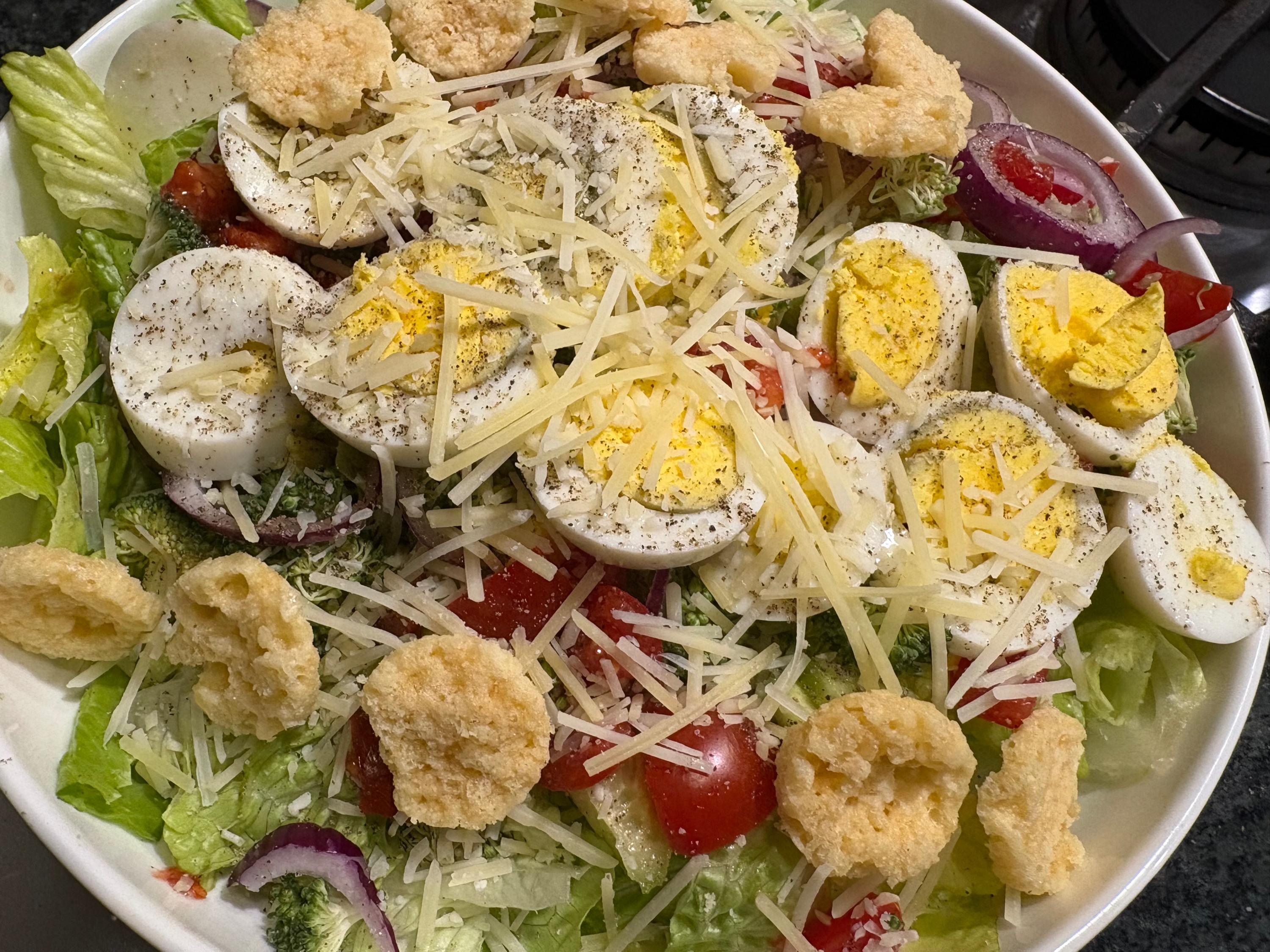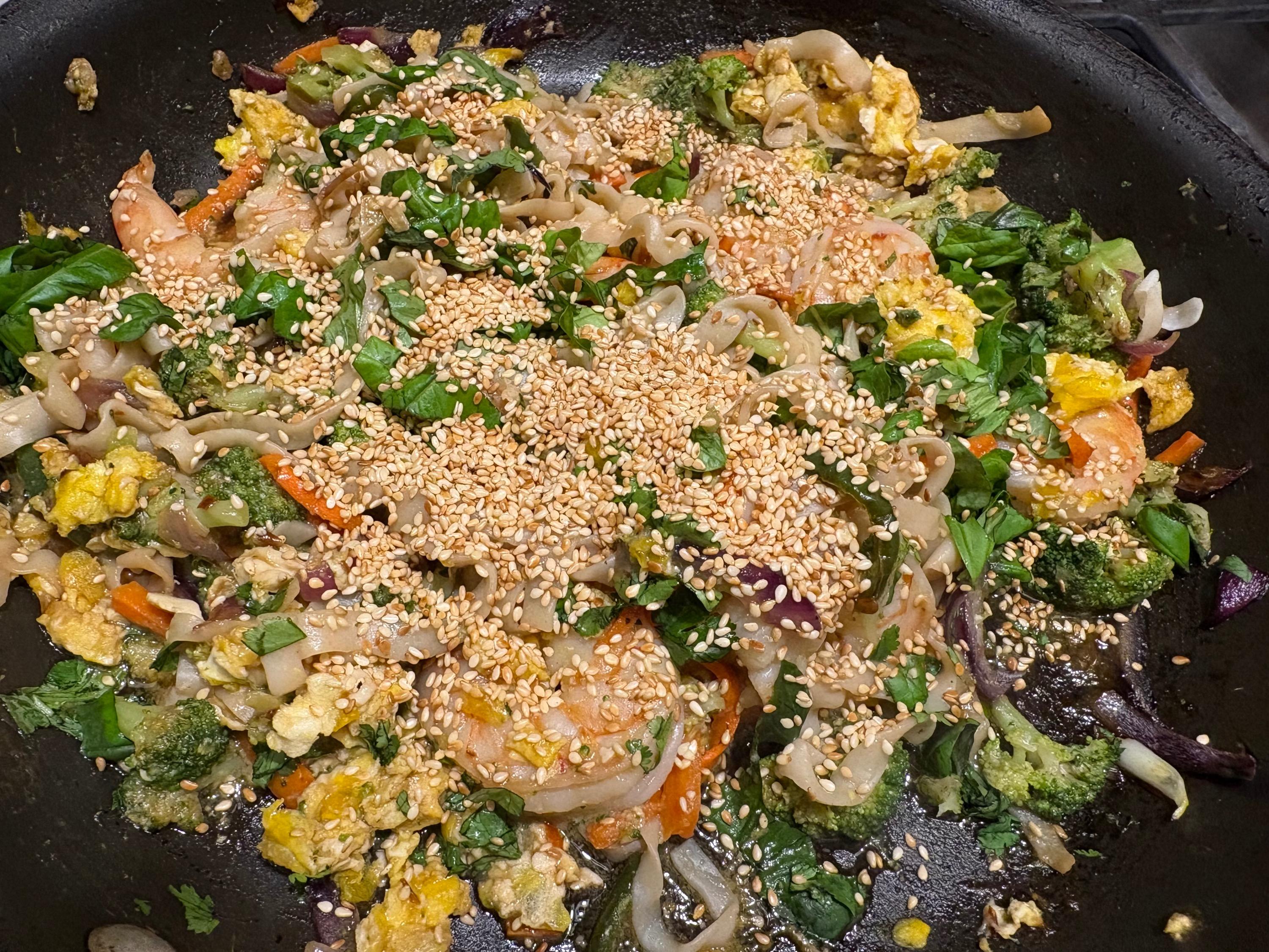 Salad (sigh) and SV'd lamb chops Italian stuffed peppers and cooked to death green beans SO tired of making the same things so I did Drunken Noodles with shrimp (noodles were shirataki) and a cucumber carrot salad with a lime juice/honey/rice vinegar/sesame oil/chili pepper dressing. Had to go out to eat for lunch and took home some uneaten fried mushrooms--reheated them in the air fryer and I was really impressed. Ronnie liked them better than the first go around because they were nice a crisp. Air fryer is probably getting a permanent place on my ever dwindling counter space. Deviled eggs, shrimp scampi and SV'd steaks also