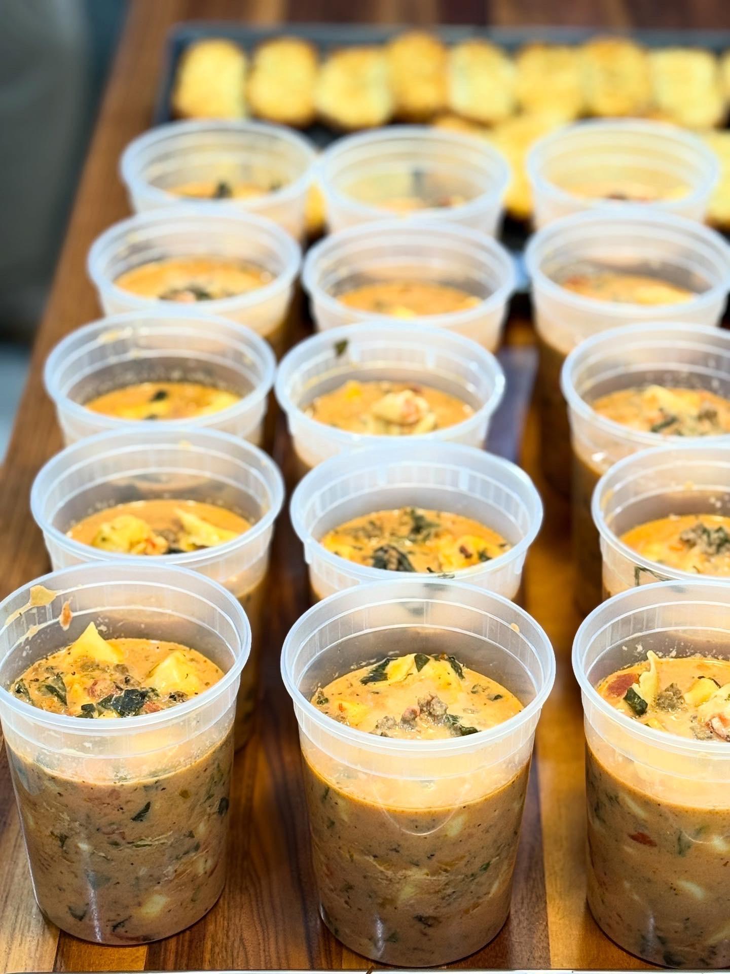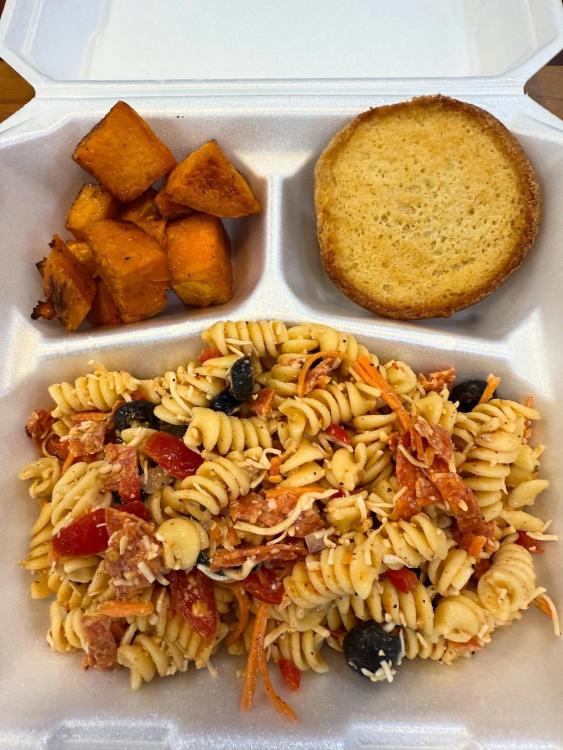 Hi, All! I’ve been away from eGullet for several years, so many of you may not remember me, but perusing current postings, I see many familiar names. 👋 I’m posting because I’ve been doing some cooking for one of our local community fridges, and I need help! Once a week I prepare and package meals for the fridge and my goal each week is 24 meals. While I often achieve that goal, a few times I’ve missed because I’ve miscalculated amounts and/or I make my serving sizes too generous. Also, I don’t get specific critical feedback, and sometimes I need it (she says before actually receiving critical feedback). My idea is to first share some pictures of meals I’ve prepared so y’all can see what I’ve done and then to post more in a sort of weekly blog about the meals each week. Any interest? I know many of you will have great ideas and guidance and feedback. Last week’s meal was a bagged lunch of tortellini soup with Italian sausage and spinach, accompanied by cheese toast. Sheet pan lasagna Sheet pan lasagna, cuke salad, buttered toast. Pasta salad, roasted sweet potatoes, buttered toast. Baked penne, salad, garlic bread. Corn salad Pulled chicken sandwich Pulled chicken sandwich and corn salad. Ham fried rice. Ham fried rice. Tamale pie, salad, dressing. Pork jambalaya, white beans, coleslaw. Chicken fried rice. Baked chicken thigh, baked potato, peas, buttered toast. Baked chicken spaghetti, two ways, broccoli, garlic bread. Red beans & rice with smoked sausage & ham, cornbread, two boiled cookies. Chicken fried rice