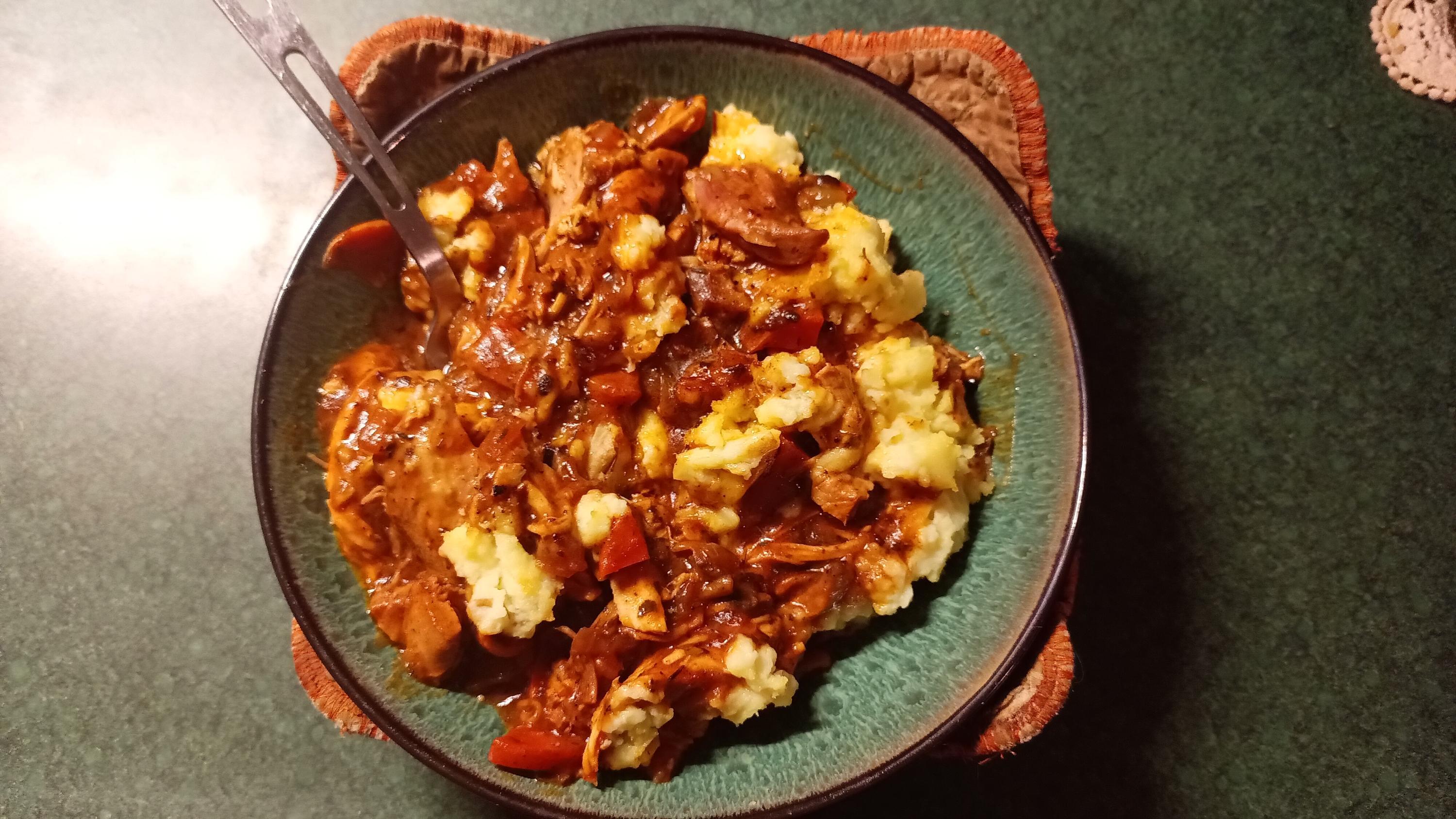 I’ve been enjoying these brothy rice with veg and protein dishes lately. This one is boned chicken drumsticks marinated with white miso, soy, honey and gochujaro, some baby pak choy and bean sprouts in chicken bone broth.