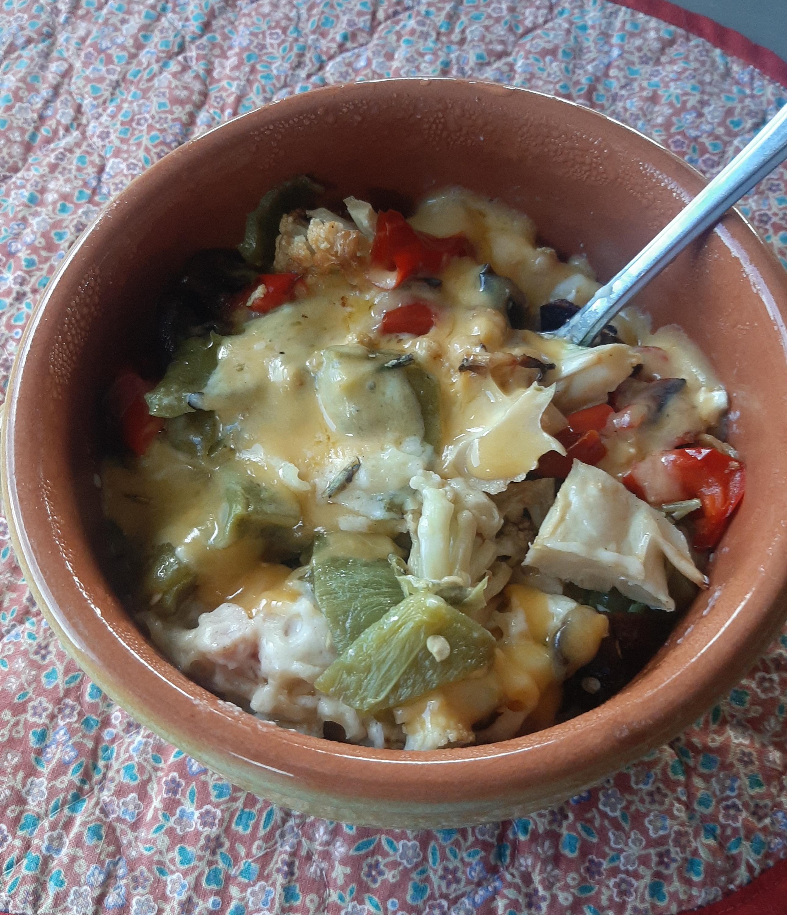 Chicken curry with spinach ( Chicken Saag ) Interestingly !! (not) my dear husband added the cooked rice into the dish which made for an unusual texture but was surprisingly quite good. With microwaved poppadoms and yoghurt