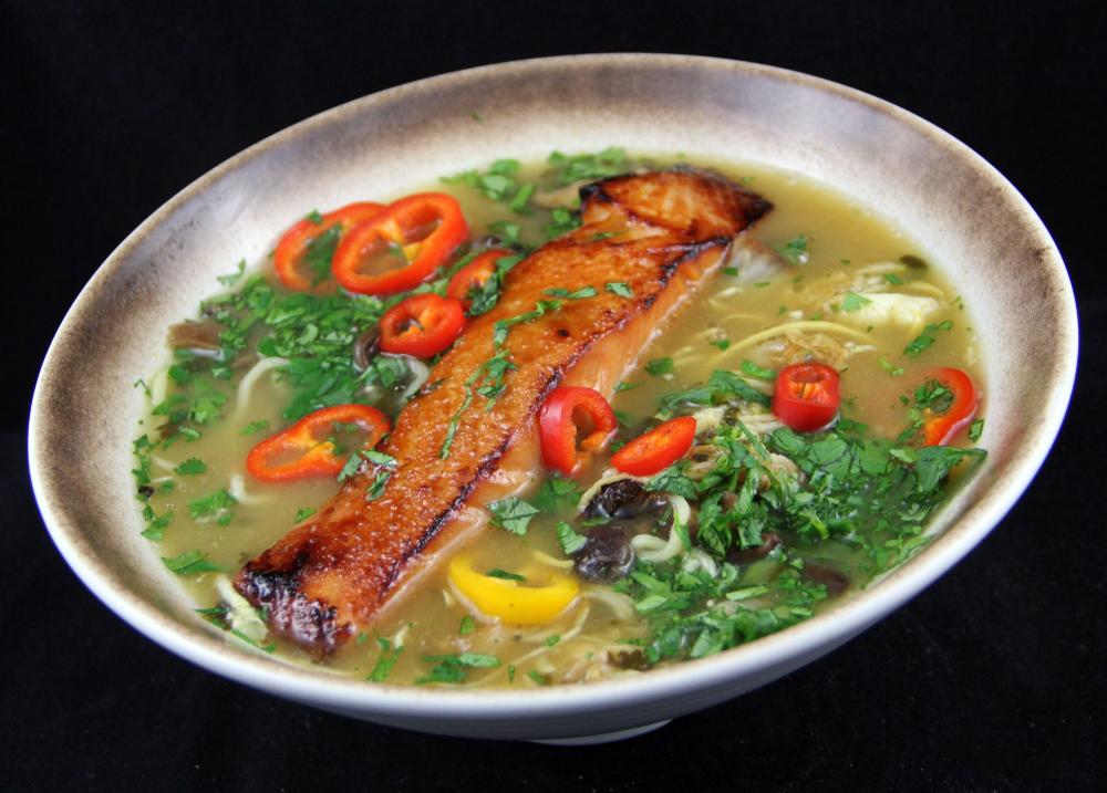Our local fishmonger comes to a nearby farm stand on Tuesdays and Fridays, so we have been getting fish for Tuesday and Wednesday dinners. Tuesday we had broiled sole with lemon and capers over Israeli couscous seasoned with pesto and cherry tomatoes and spinach. The couscous I had on hand had been colored with turmeric, which is why it looks so yellow. It was tasty, but the spinach cooled off almost immediately. It's getting cold enough outside that I am going to have to start heating the plates before dinner... Wednesday was the usual miso salmon. This week we had it in a soup bowl with a mix of traditional noodles and summer squash zoodles, plus miso roasted napa cabbage and a mix of oyster and shiitake mushrooms.