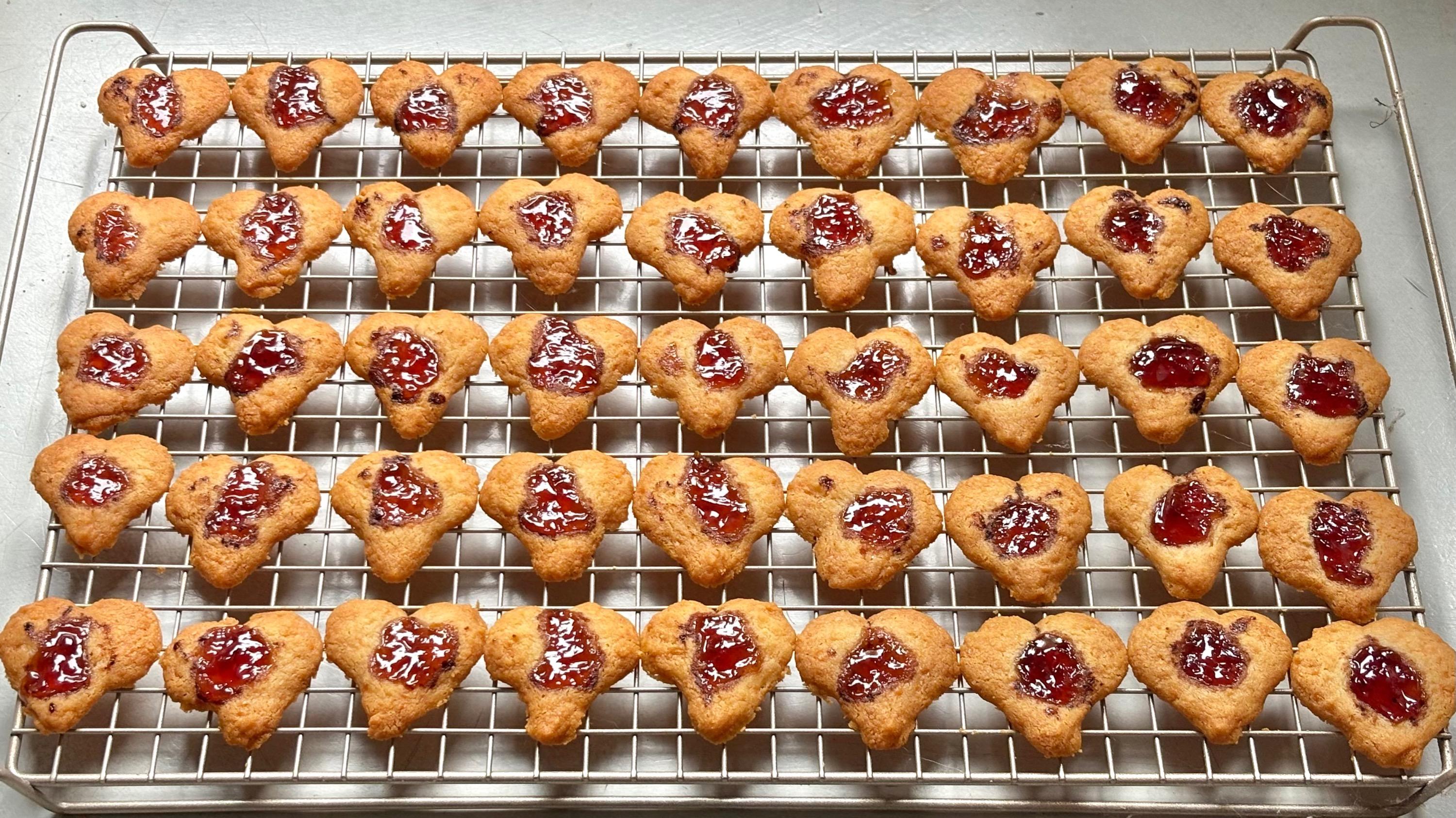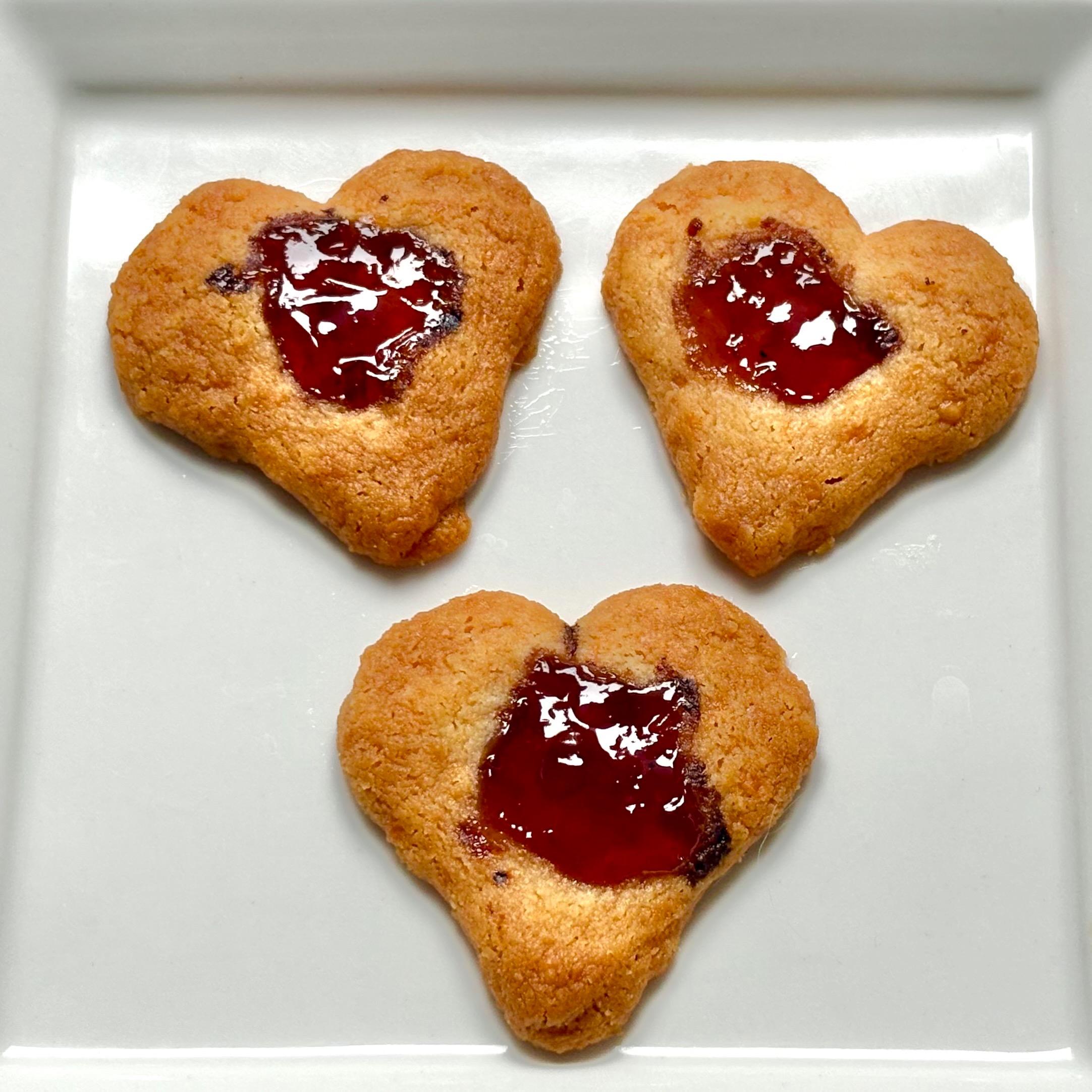 A belated Valentine’s post. Cheese thumbprints (from Deep Run Roots) filled with pomegranate and jalapeño jelly.